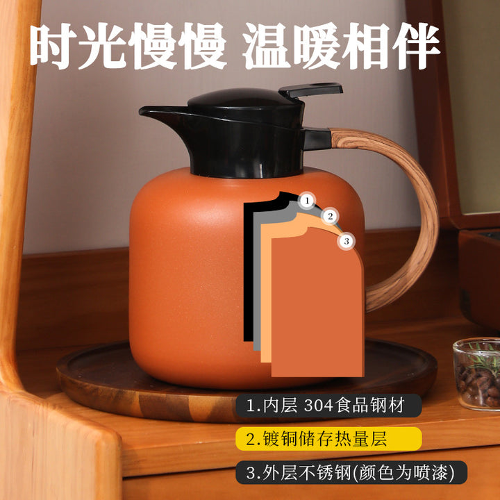 304 stainless steel thermal insulation pot, large-capacity press-type household kettle, Guochao retro hotel vacuum thermos bottle