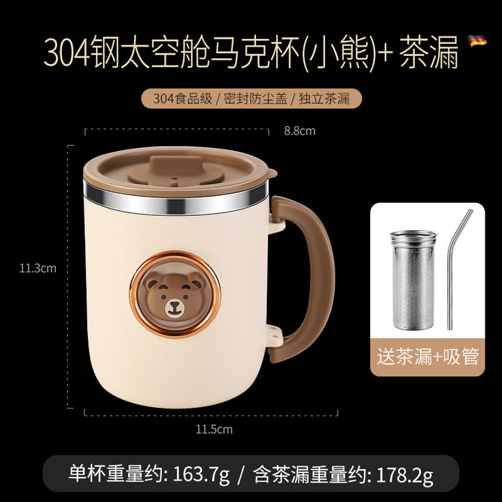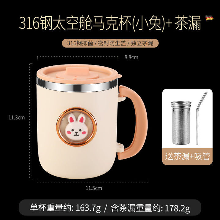 316 stainless steel cartoon space capsule mug with lid high value couple water cup tea separation tea cup