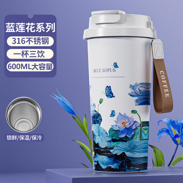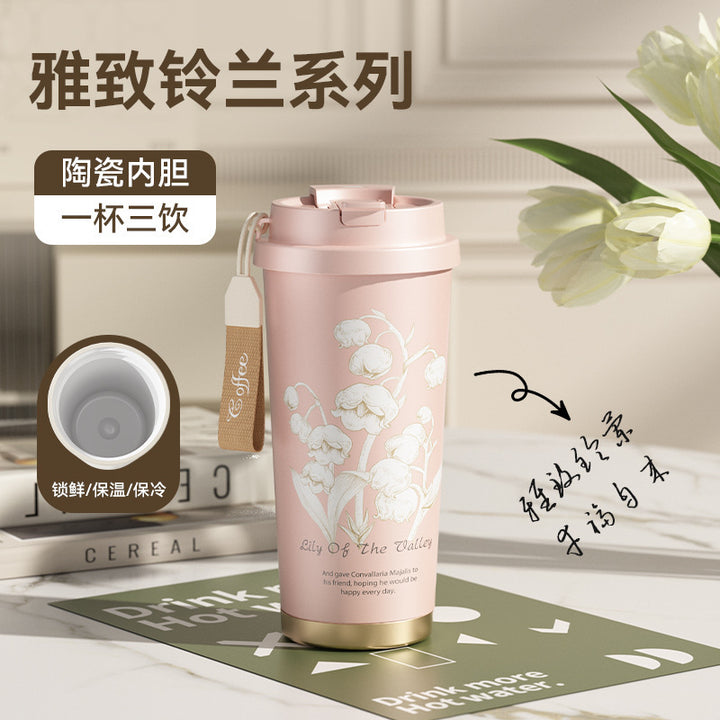 316 thermos cup, coffee cup, girls 2025 new high-value double drink cup, light luxury accompanying lily of the valley water cup