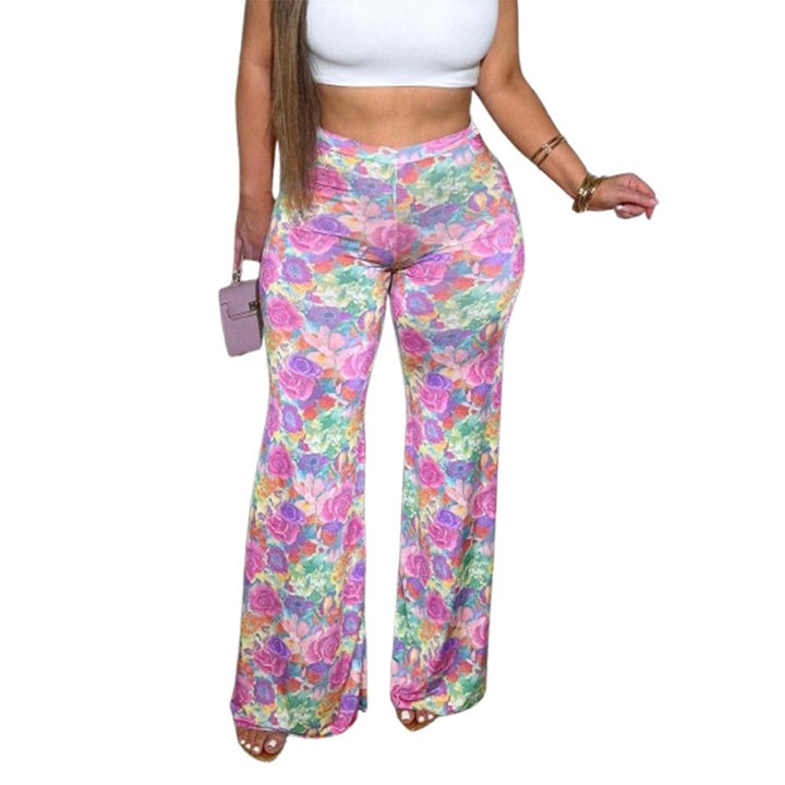 32438DBY popular 2025 spring new slim-fit printing high-elastic European and American horn casual trousers women