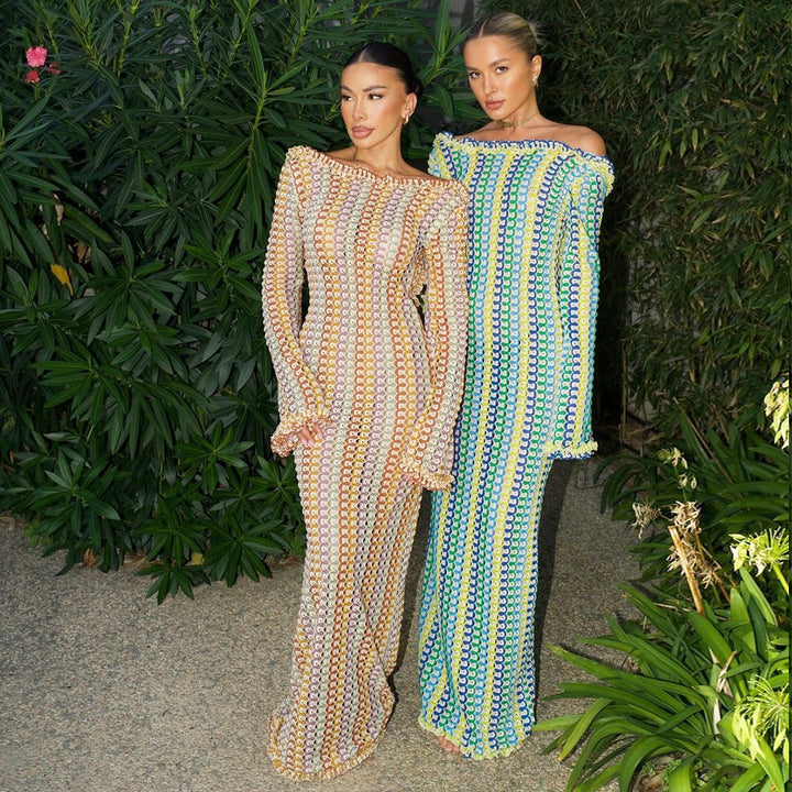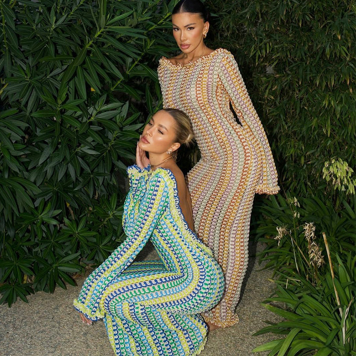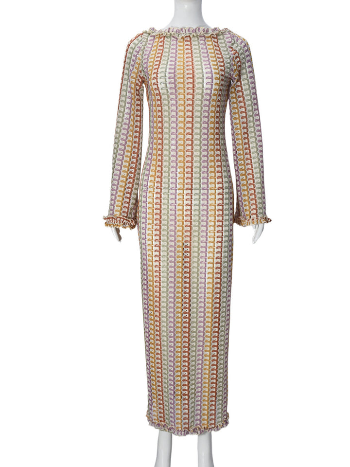 32518DBY Freet 2025 autumn new product explosion sexy yarn backless ruffle edge dress women