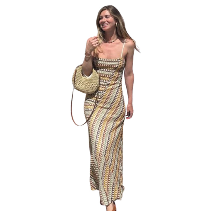 32548DBY Explosion 2025 Summer New Product Temperament Slim-fit Yarn-dyed Splicing European and American Suspender Long Dress Women