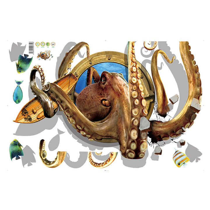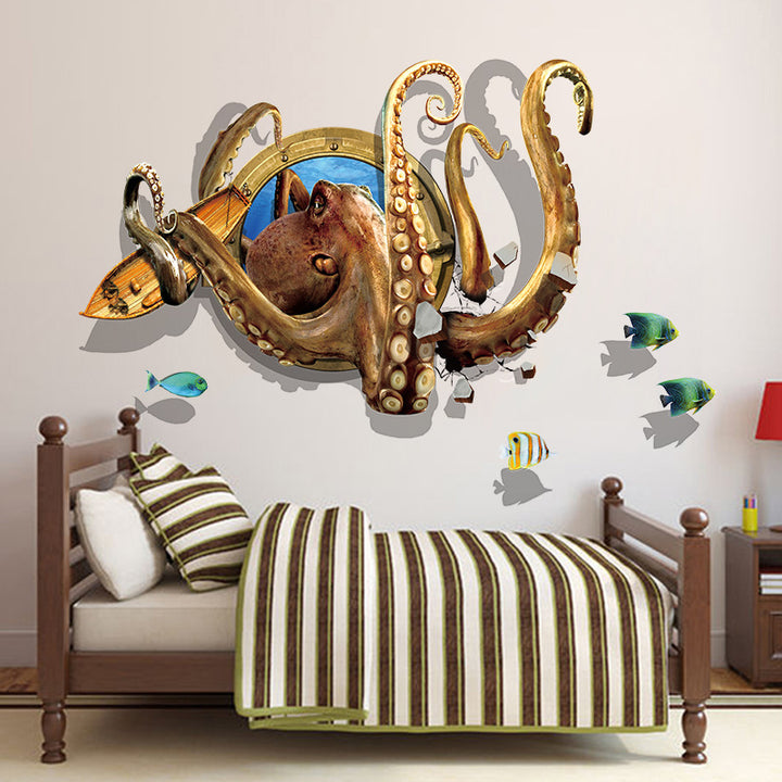 3D deep sea octopus wall sticker, bedroom living room dormitory background decoration removable self-adhesive sticker XL8311