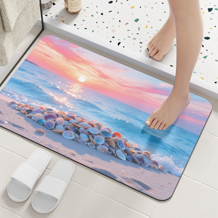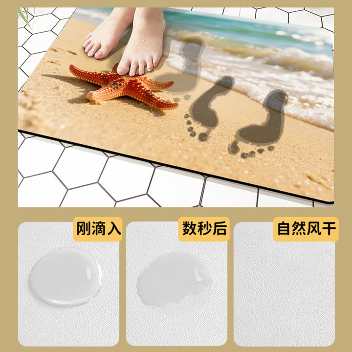 3D soft diatom mud ocean beach sea style floor mat toilet bathroom water absorption quick drying non-slip door floor mat