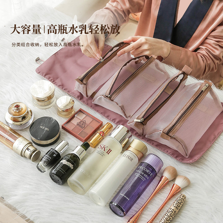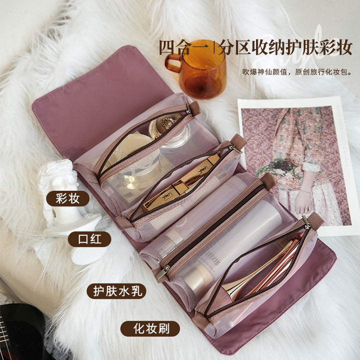 4-in-1 cosmetic bag, women's portable partition, large-capacity business trip storage bag, folding cosmetic toilet bag