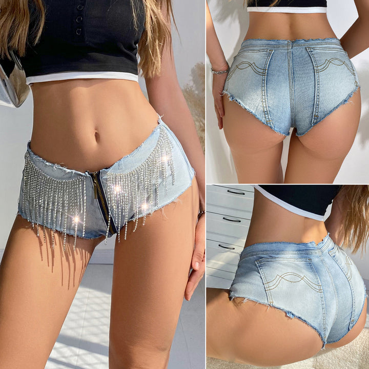 4005 #Cross-border new sexy European and American low-rise high-elastic fringed super short jeans denim shorts women's hot pants