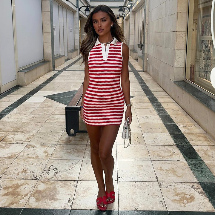 42122DBG explosion 2025 summer new slim-fitting contrasting color striped POLO collar European and American dress women