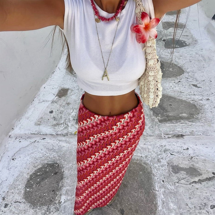 42239SBG Explosion 2025 Autumn New Product Fashion Slim-fit Yarn Stripes Europe, America, Skirt, Women