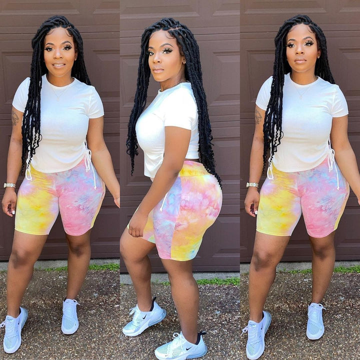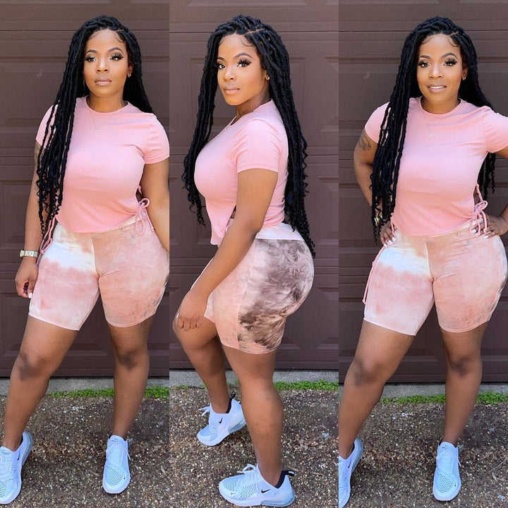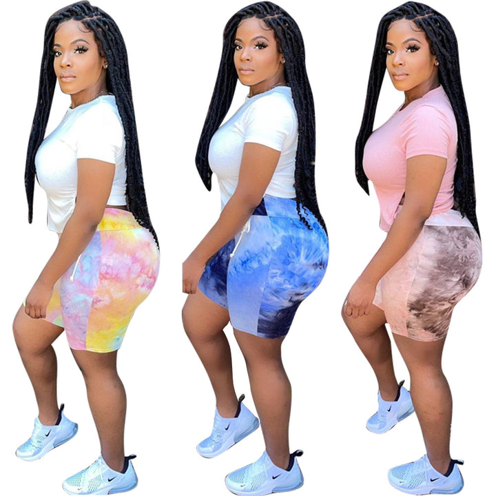 5477 women's clothing new, fashionable summer new pants set printed on both sides of the drawstring casual T-shirt two pieces 1