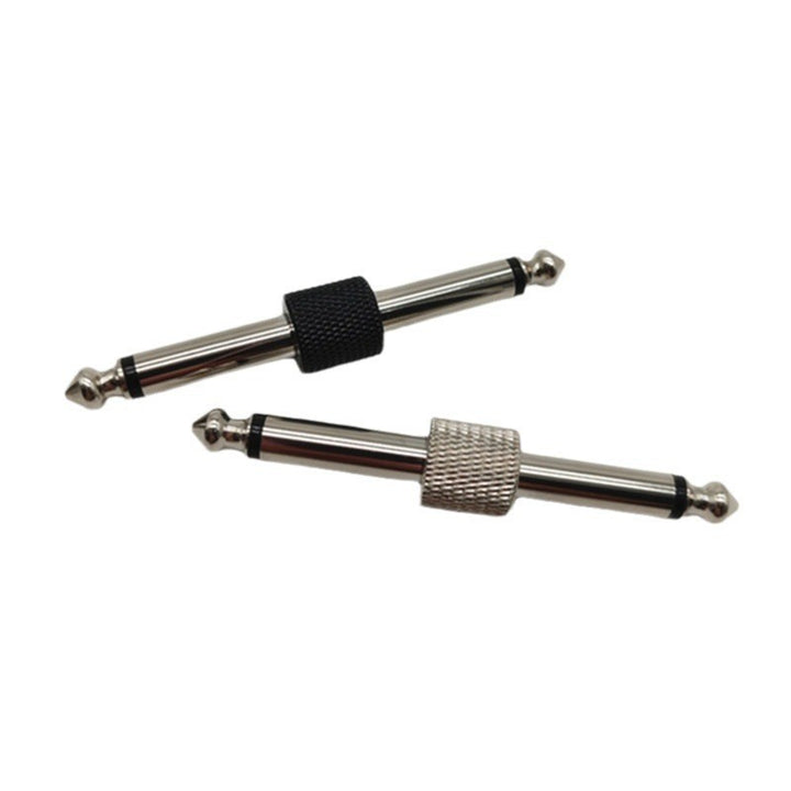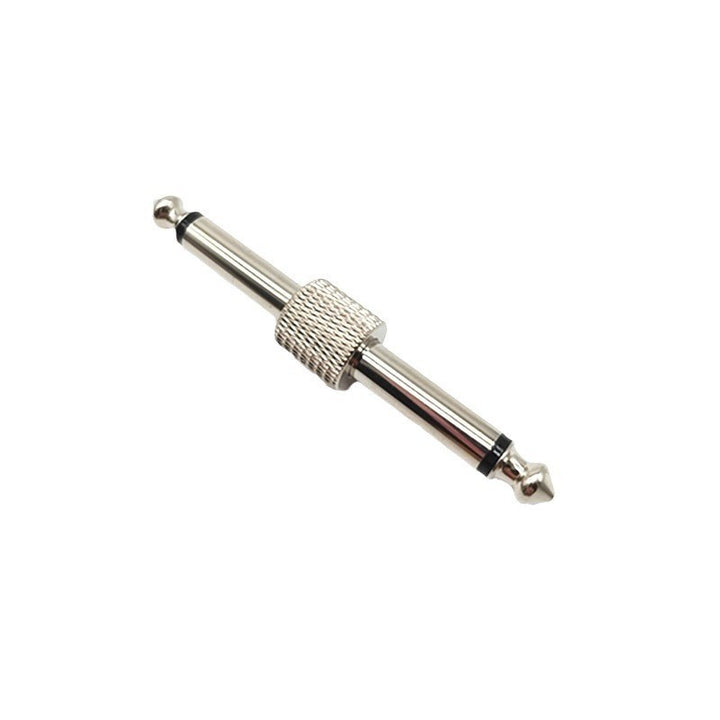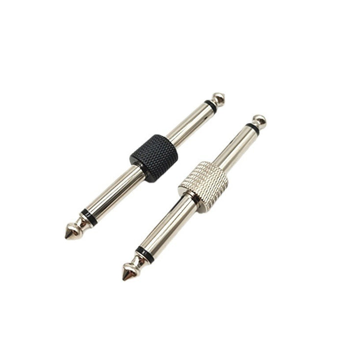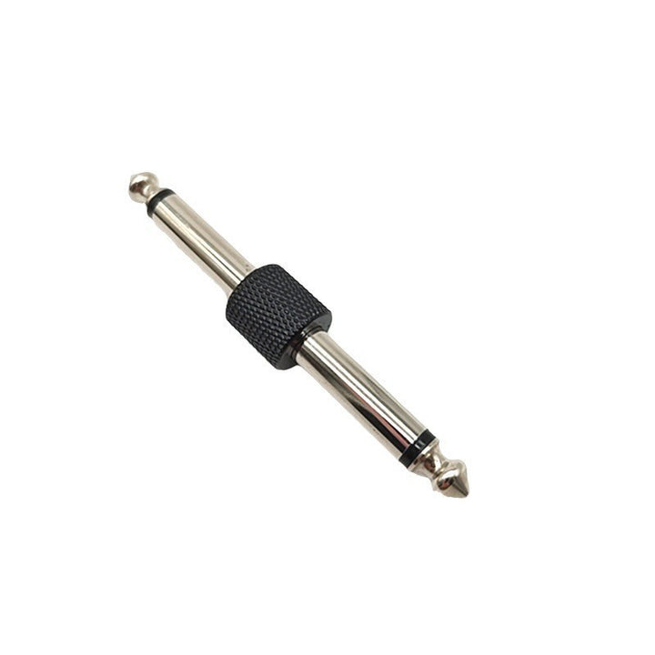 6.35 Single piece reticulated solder-free guitar effect converter, double-head plug, mono plug, nickel-plated black silver.