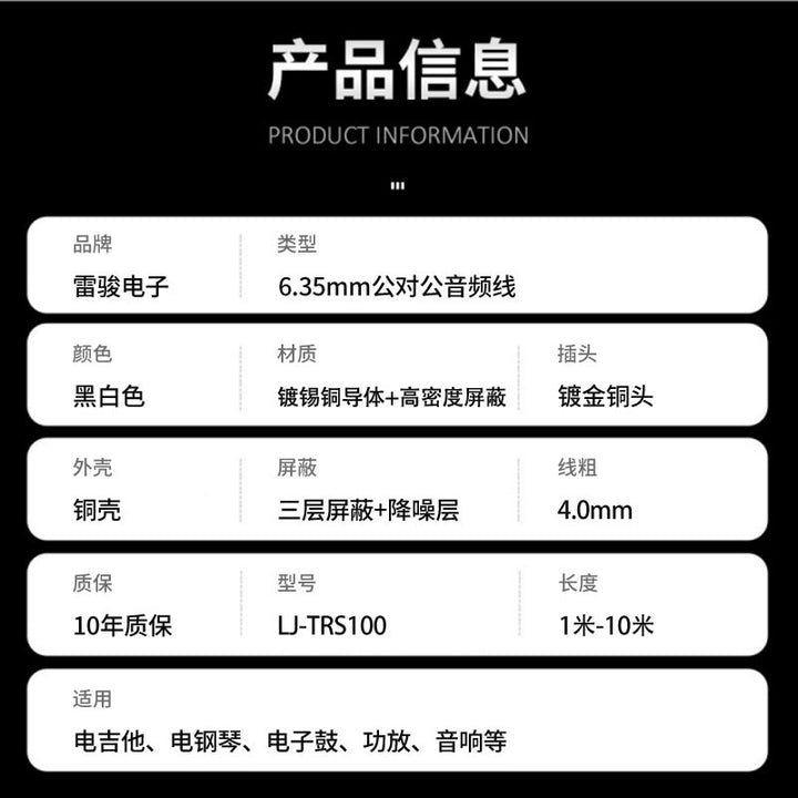 6.5Mm large two and three core audio cable male-to-male audio mixer power amplifier microphone 6.35mm cable customization