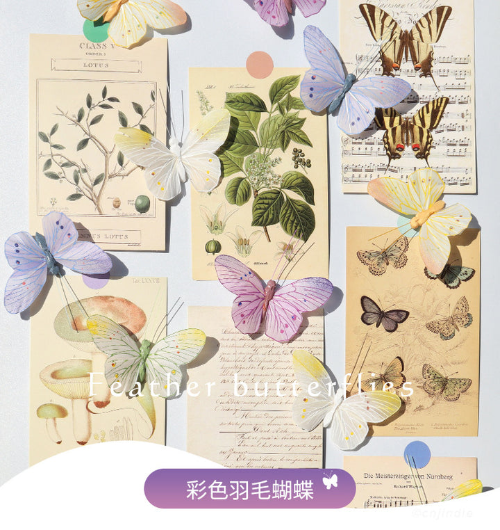 6-Pack colorful hand-painted feather butterfly wedding arrangement simulation butterfly party decoration, simulation feather butterfly