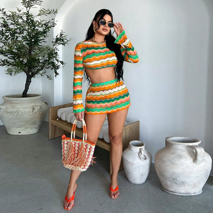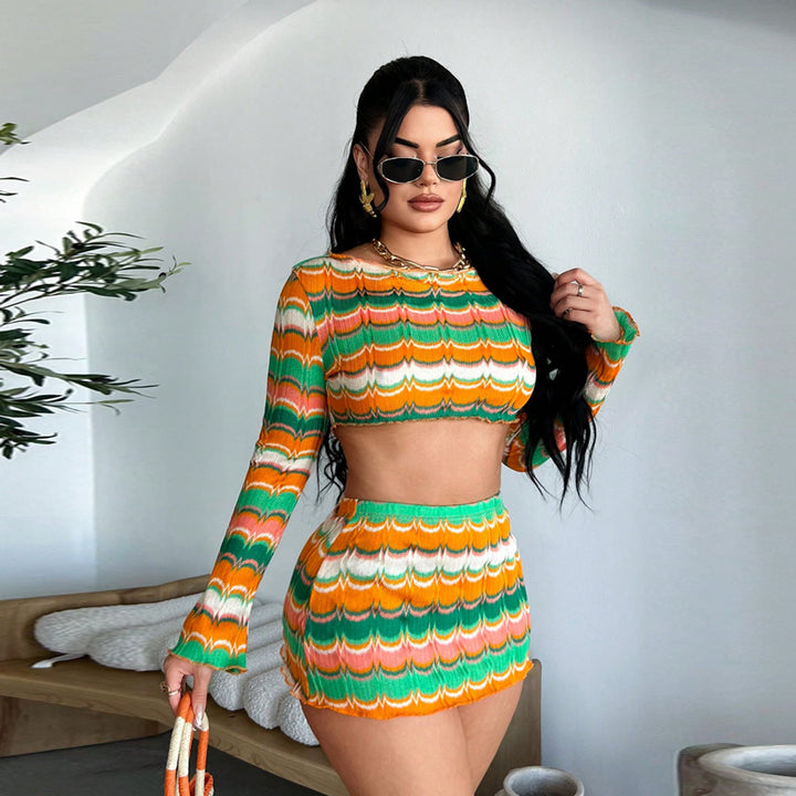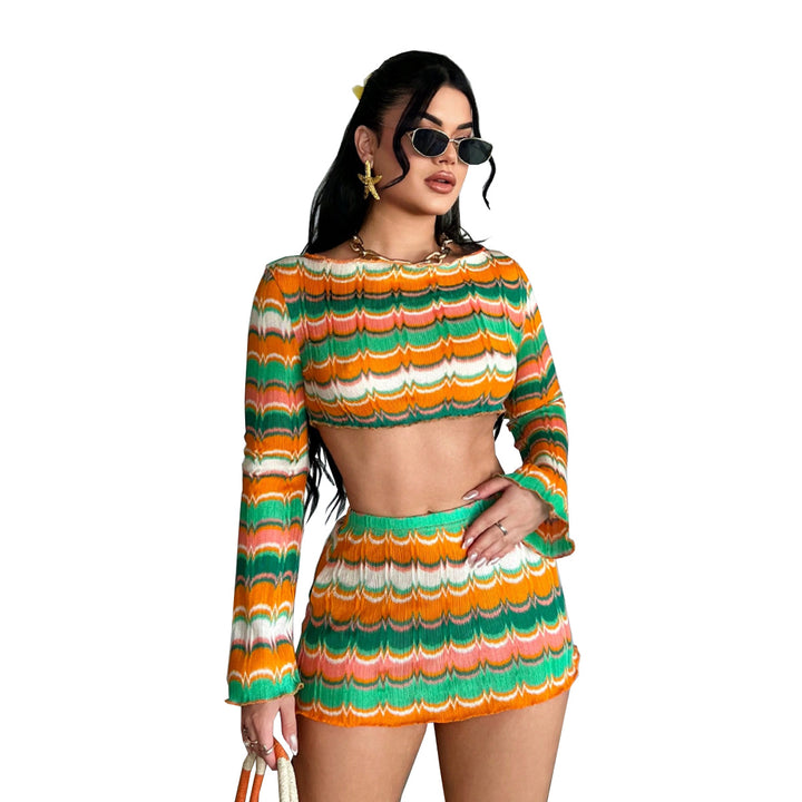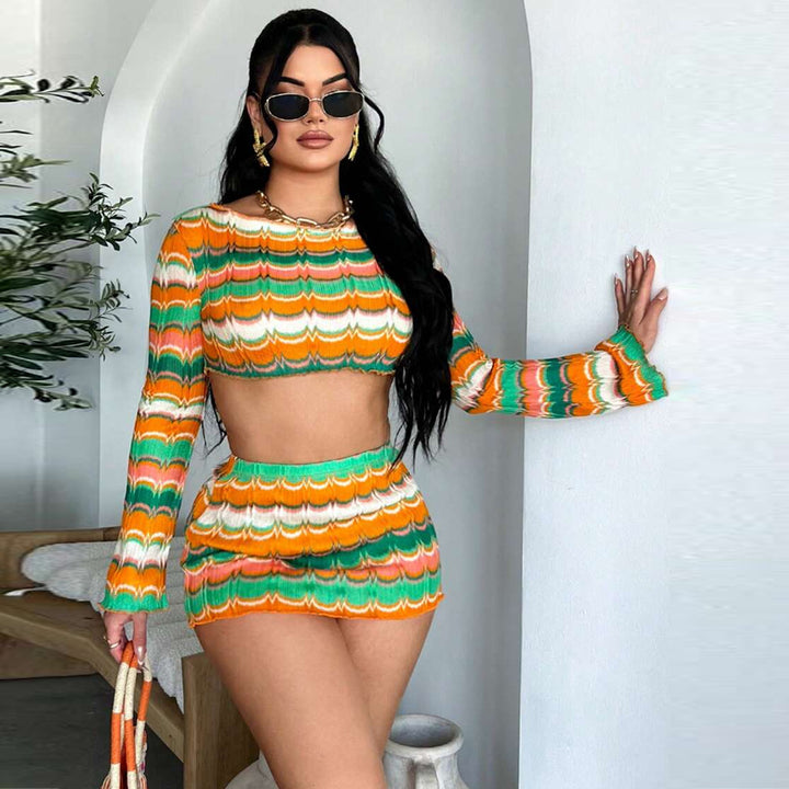 60197SBZ exclusive supply for Freite 2025 autumn new product sexy exposed navel yarn multi-color European and American suit women
