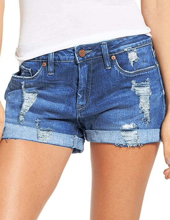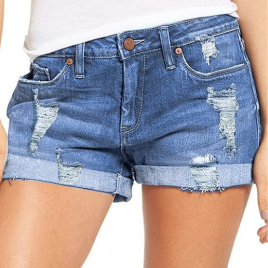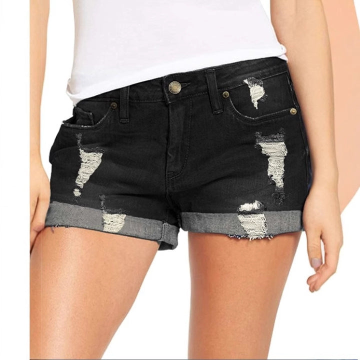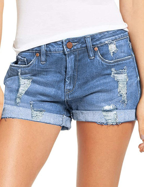 6681 #Cross-border European and American new sexy high-waisted ripped high-elastic jeans women's denim shorts plus size hot