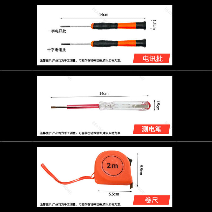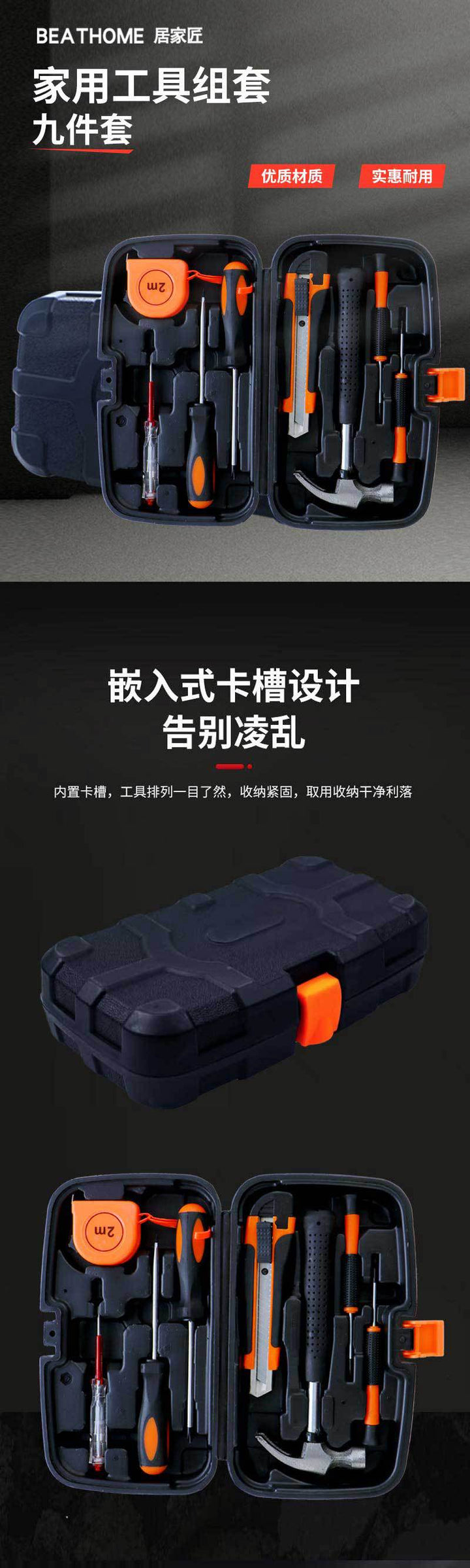 9-piece hardware toolbox for household cars, small multi-functional combination tool maintena...