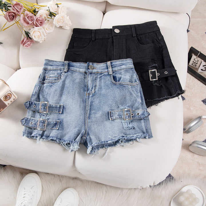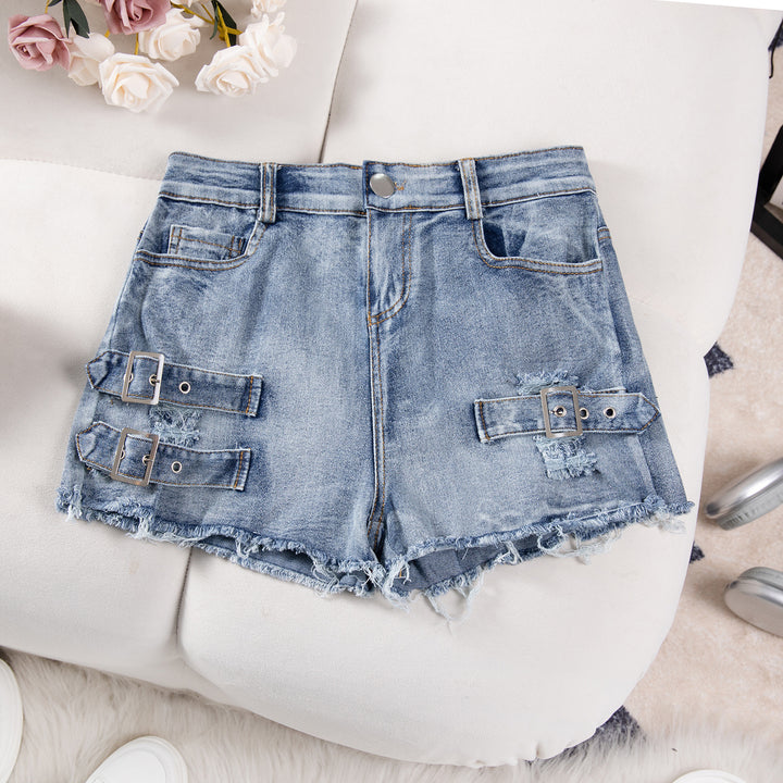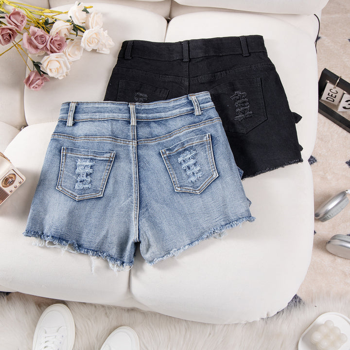 9047 #Cross-border European and American new high-waisted sexy ripped elastic plus size casual pants denim shorts jeans