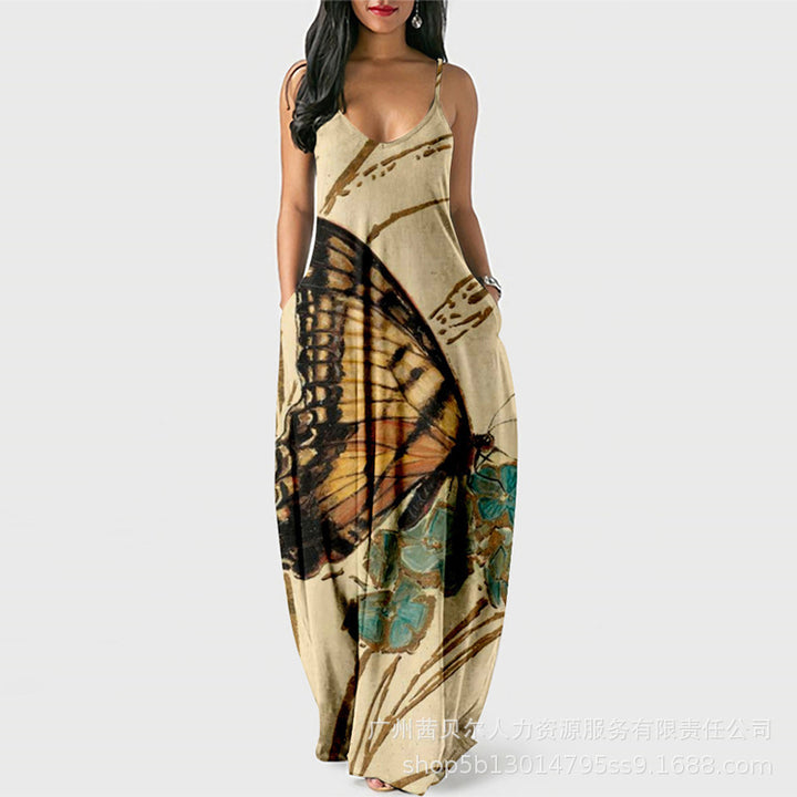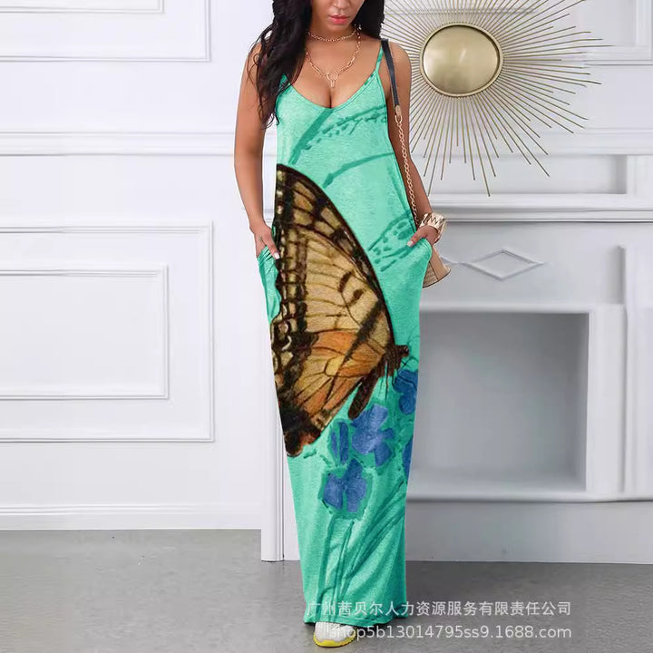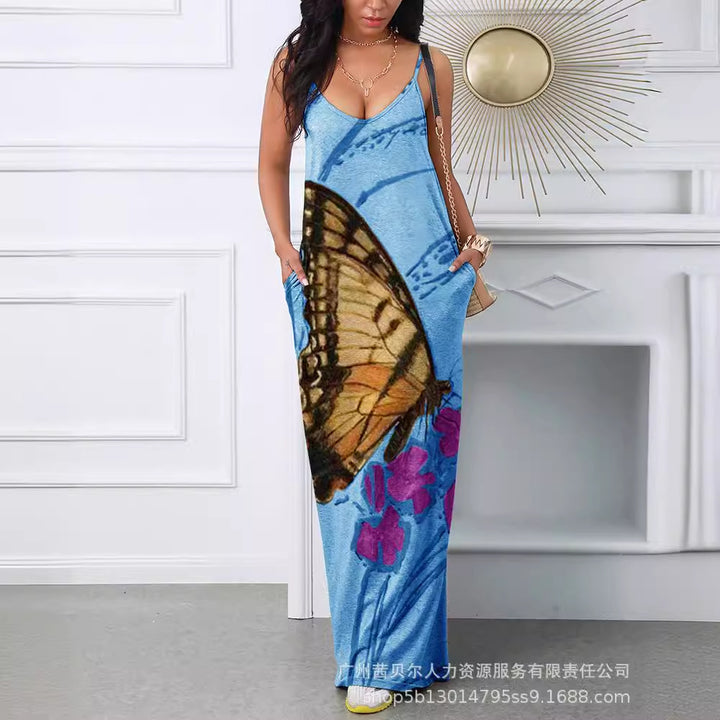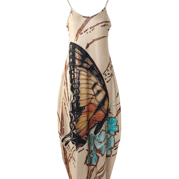 (A476) New suspender dress butterfly printing digital printing temperament street dress