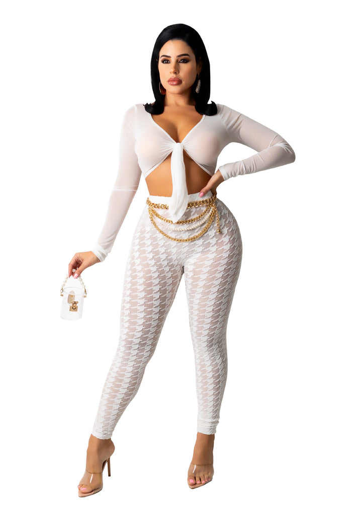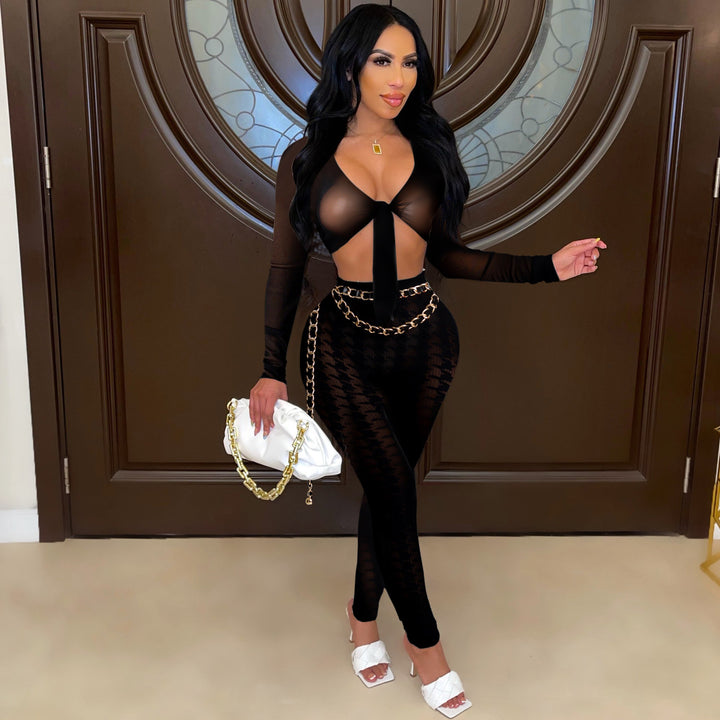A7195 sexy European and American thousand bird grid mesh yarn V-neck waist two-piece nightclub