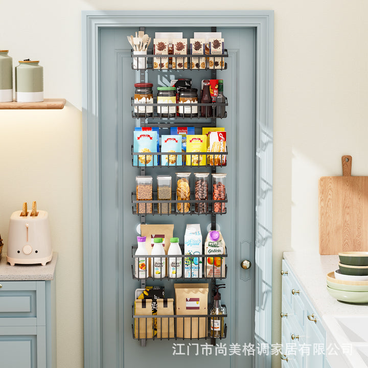 Adjustable door hanging basket rack multi-layer non-punching storage basket bathroom kitchen door sundries storage rack