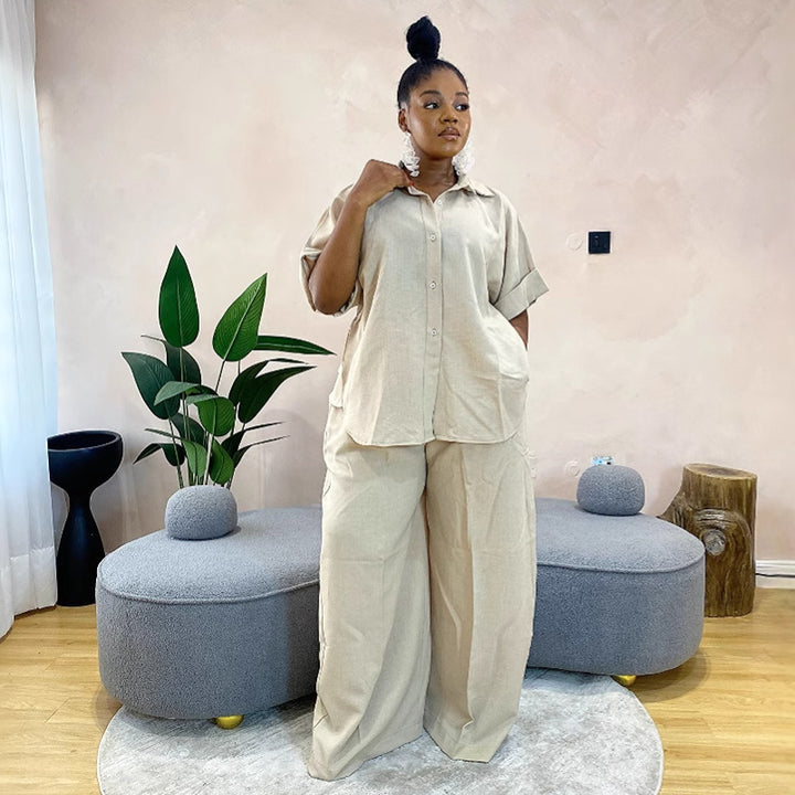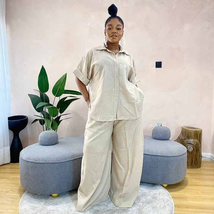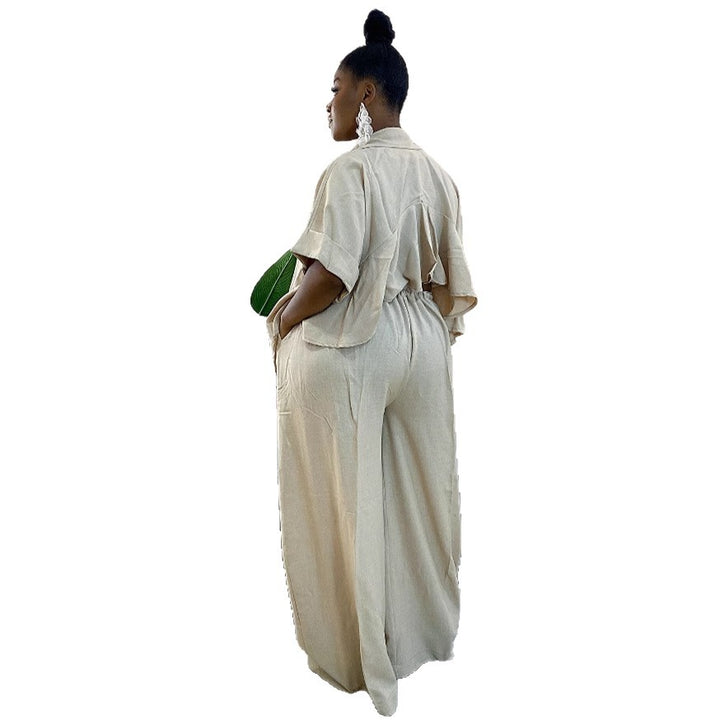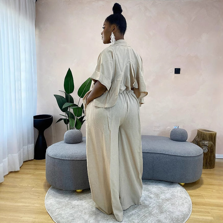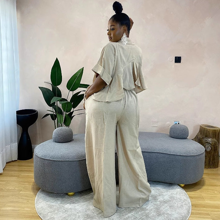 African new fashion irregular women's clothing set solid color cardigan shirt casual trousers European and American foreign style two-piece set