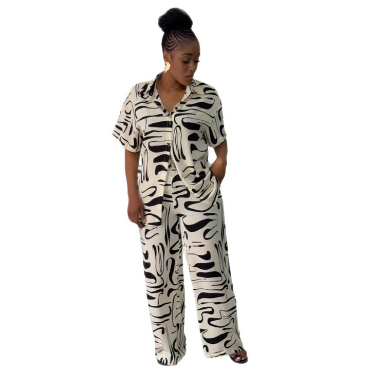 African temperament foreign style lapel print shirt set fashion casual trousers European and American women's shorts two-piece set women