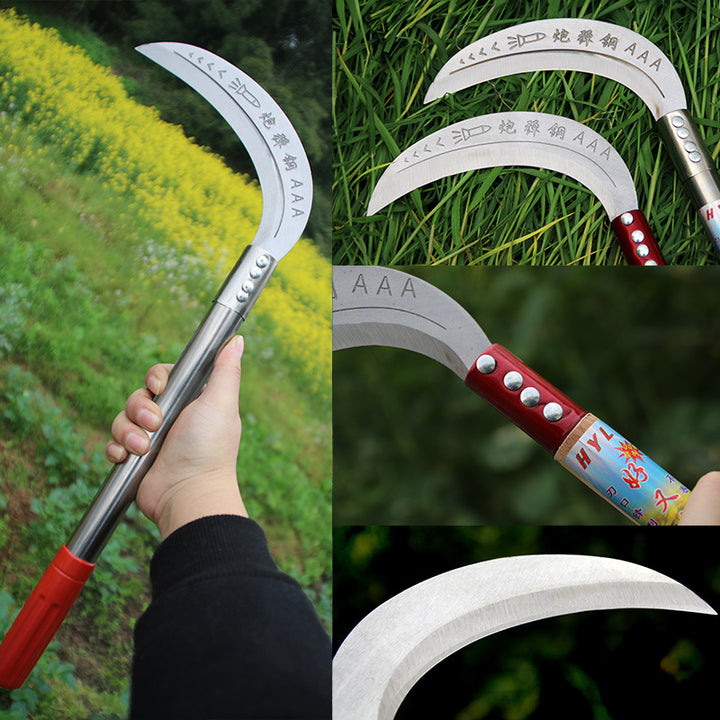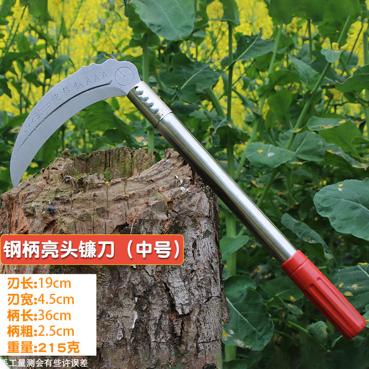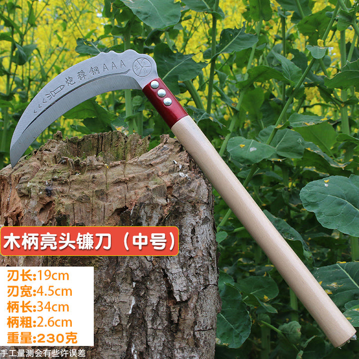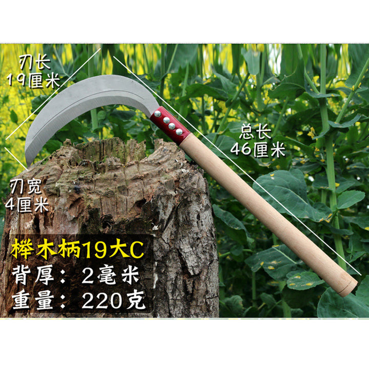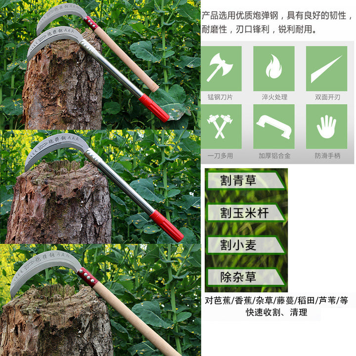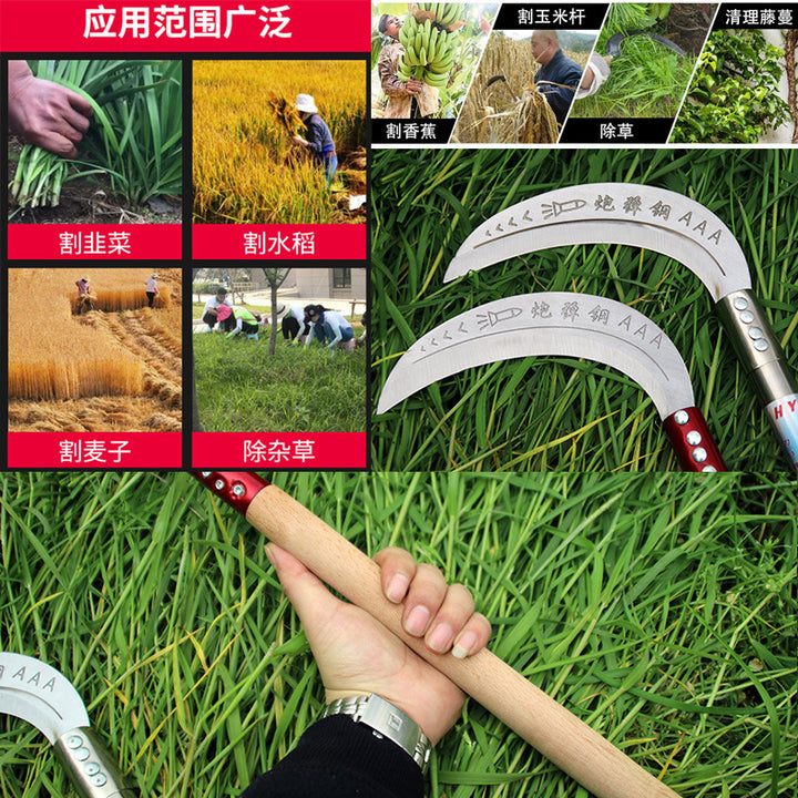 Agricultural sickle manganese steel sharp outdoor weeding tools household lawn mowing knife curved blade corn harvesting special knife manufacturer