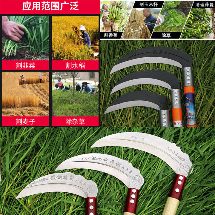 Agricultural sickle weeding tool outdoor harvesting knife manganese steel sharp household lawn mower corn harvesting special manufacturer