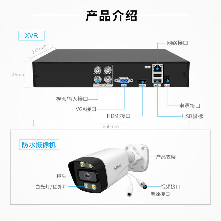 AHD surveillance camera 5 million DVR 4-way surveillance system set CCTV coaxial high definition analog video recorder