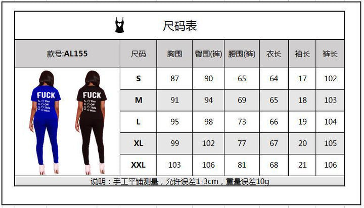 AL155 Cross-border European and American Women's Printed T-Shirt Two-piece Alphabet Offset Summer Set ins