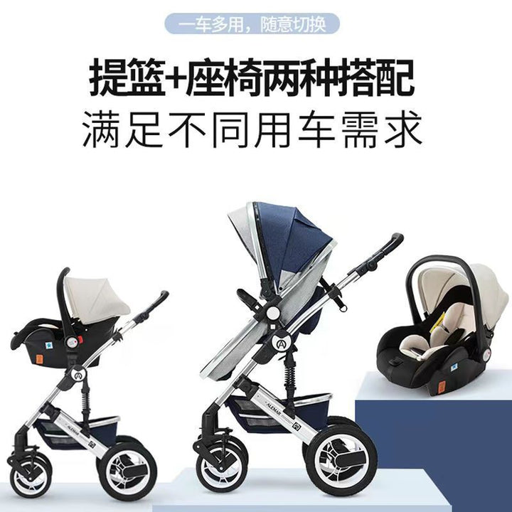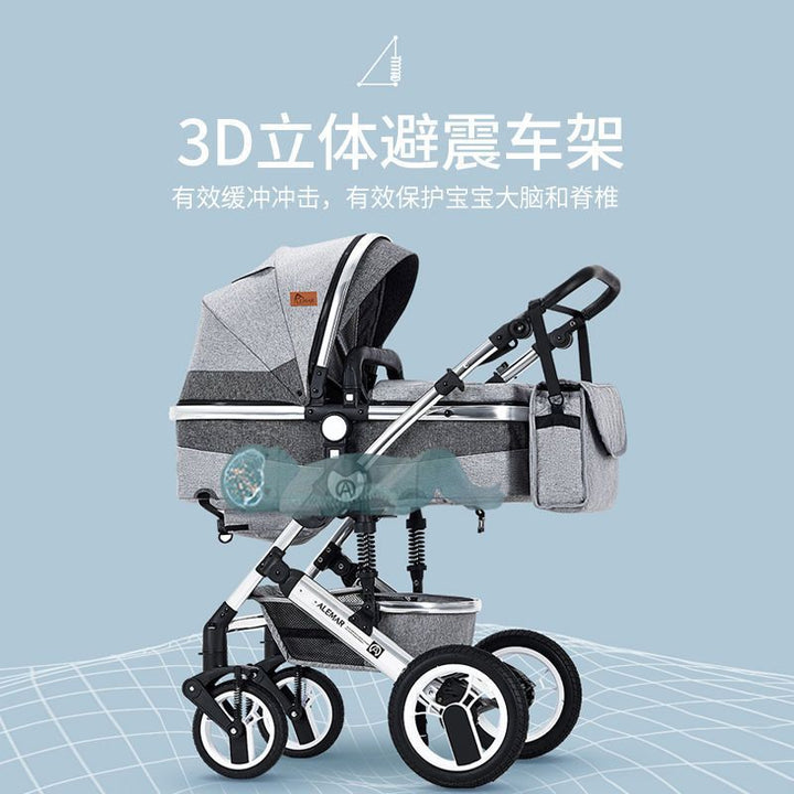Alemar High View Stroller Sit and lie down Two-way baby basket Three-in-one newborn stroller