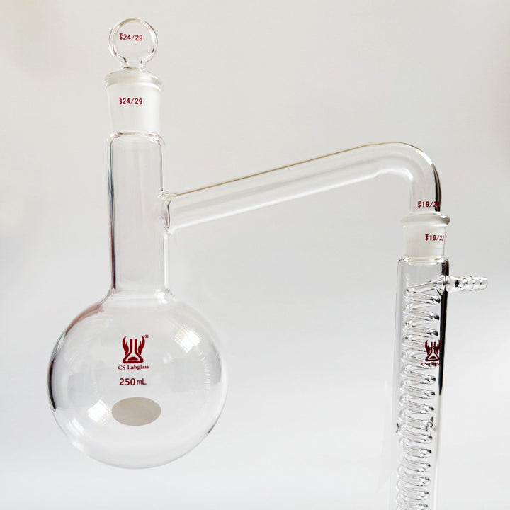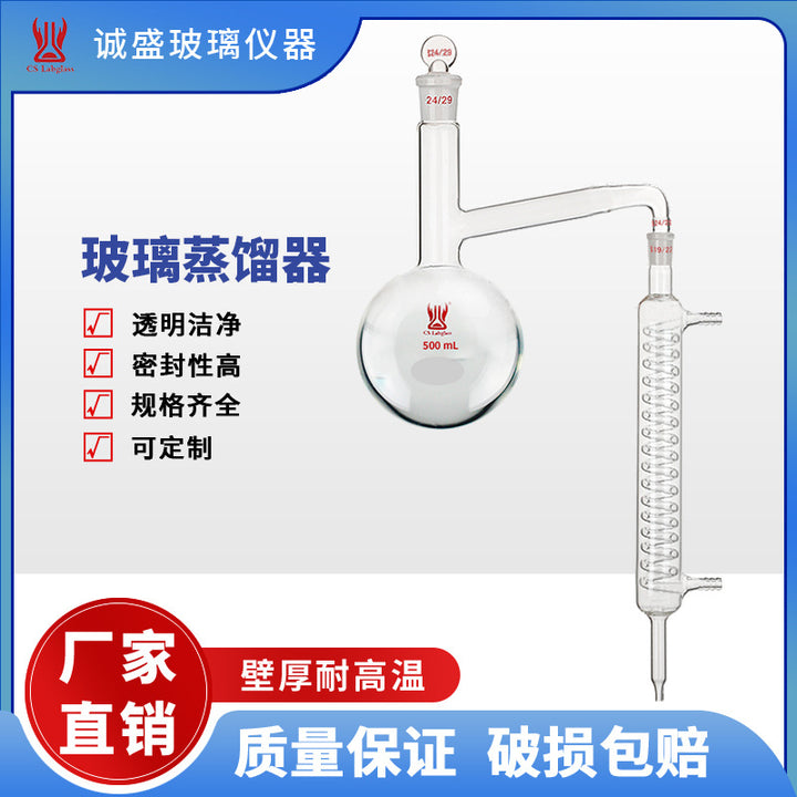All glass flat round bottom distiller device for refining essential oil distilled water cyani...