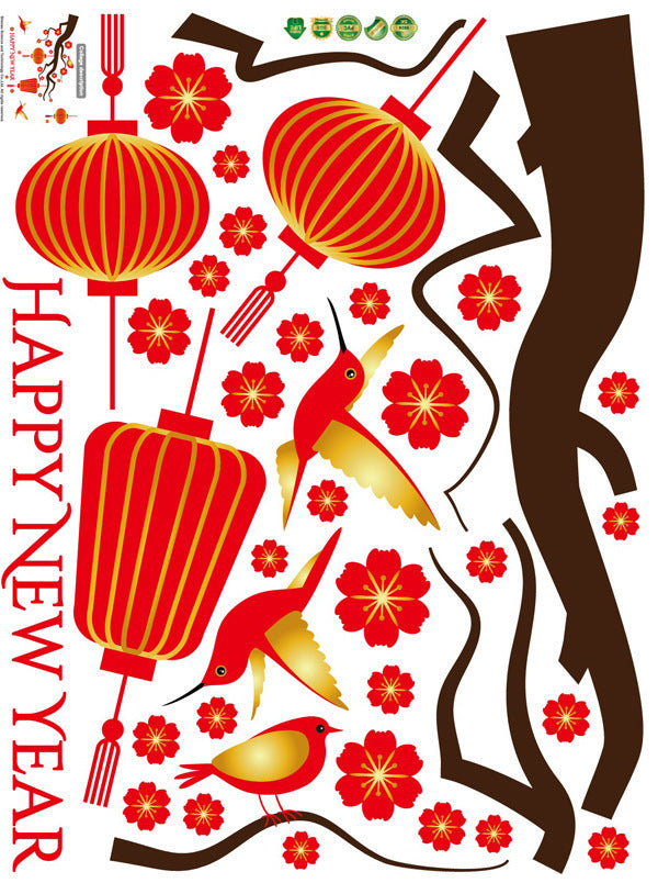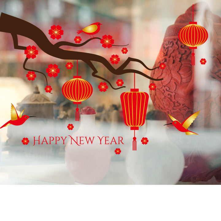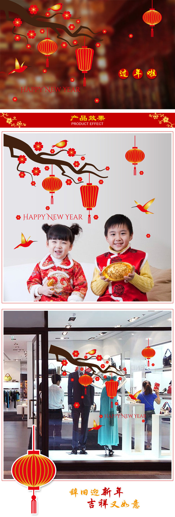 All the best in the new year, Chinese style, Spring Festival lanterns, glass window stickers, decorative stickers, self-adhesive removable SK6024