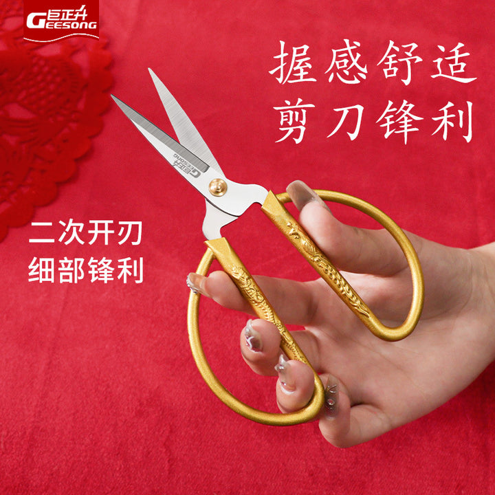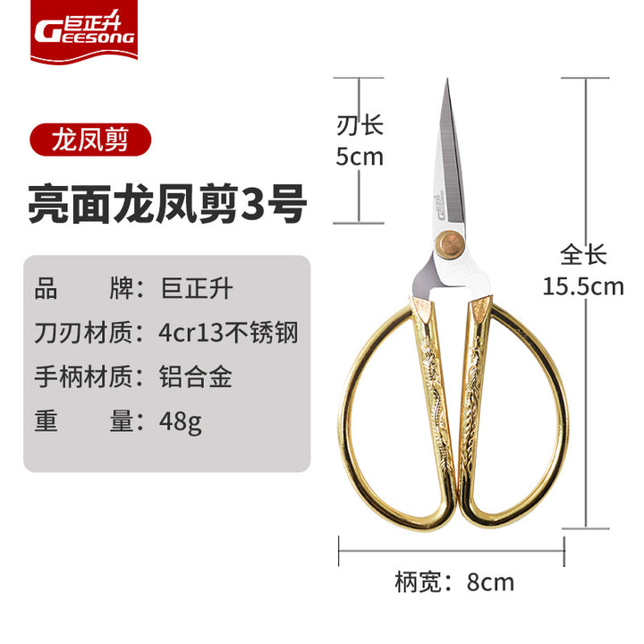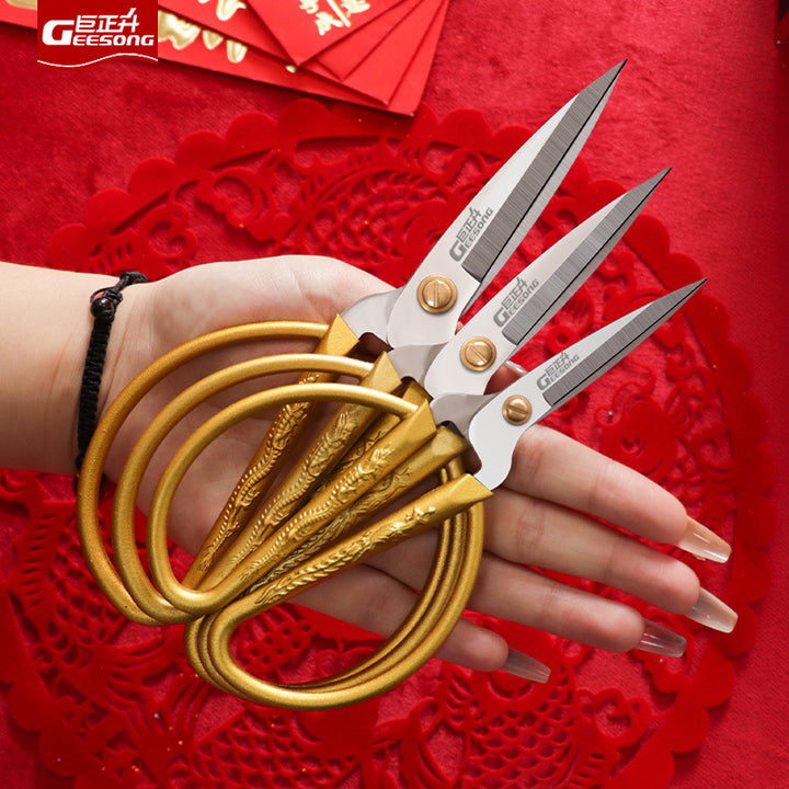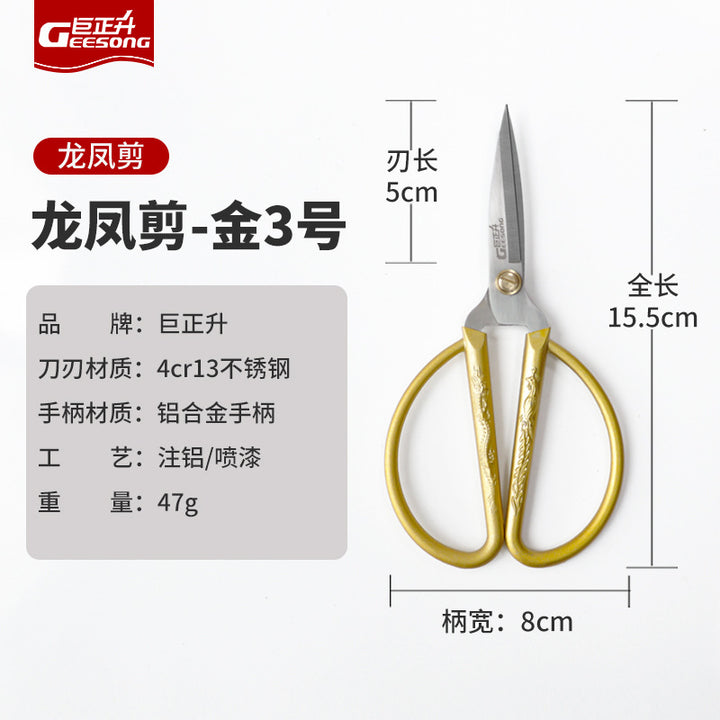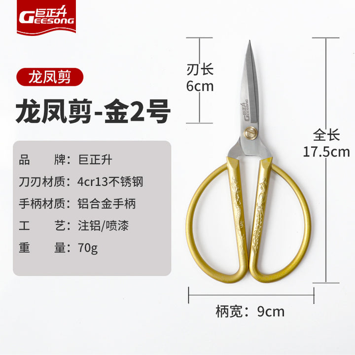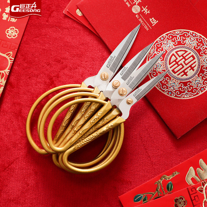 Aluminum alloy dragon and phoenix alloy scissors, large household scissors, kitchen opening ribbon cutting, strong civilian scissors, sharp and dur...