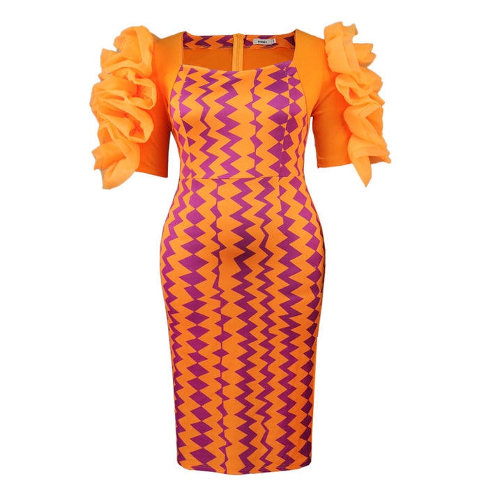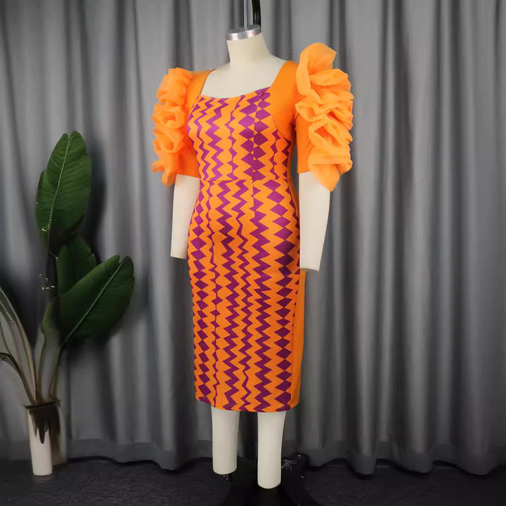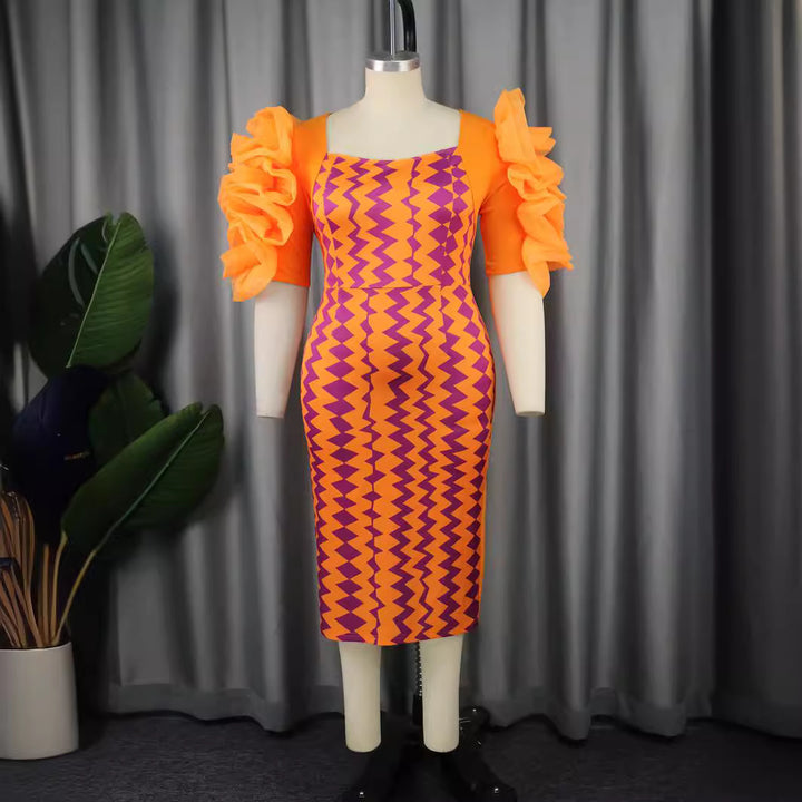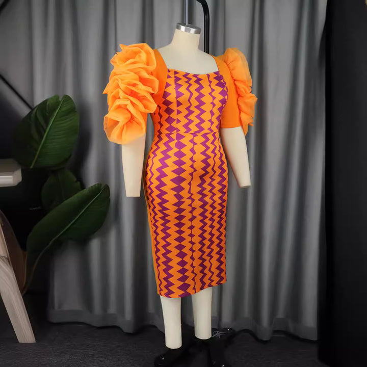 AM030104 African print sexy hip-wrapped dress, yarn stitching short-sleeved banquet dress dresses