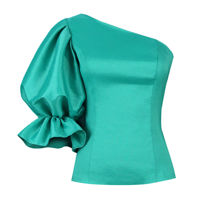 AM211243 sexy slanted shoulder T-shirt off-the-shoulder lantern sleeve temperament versatile ...