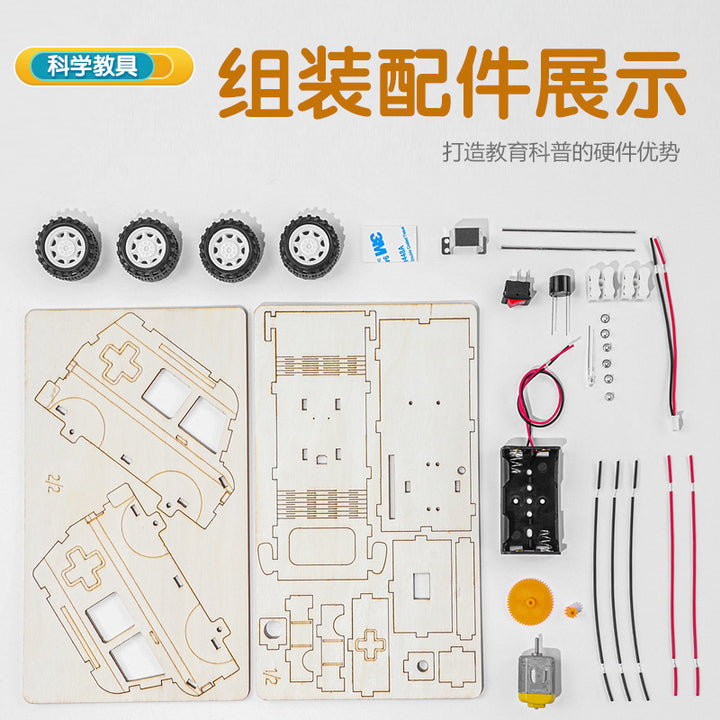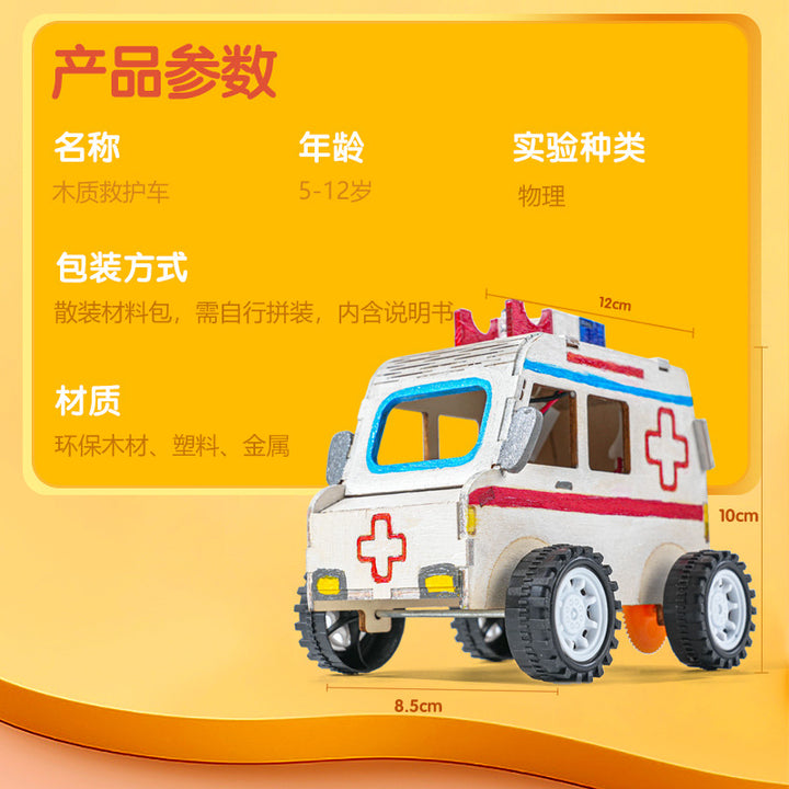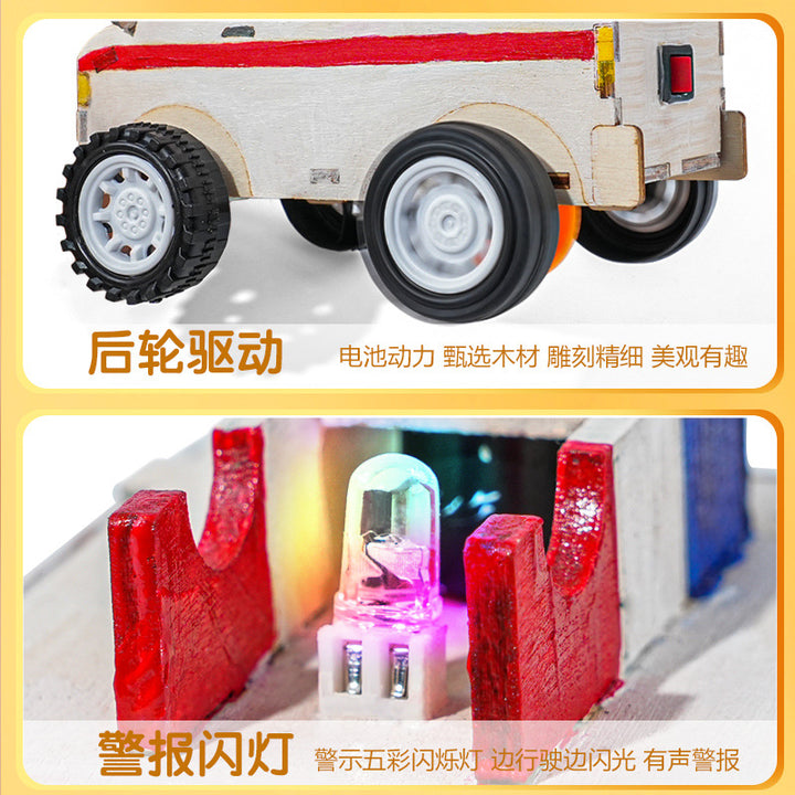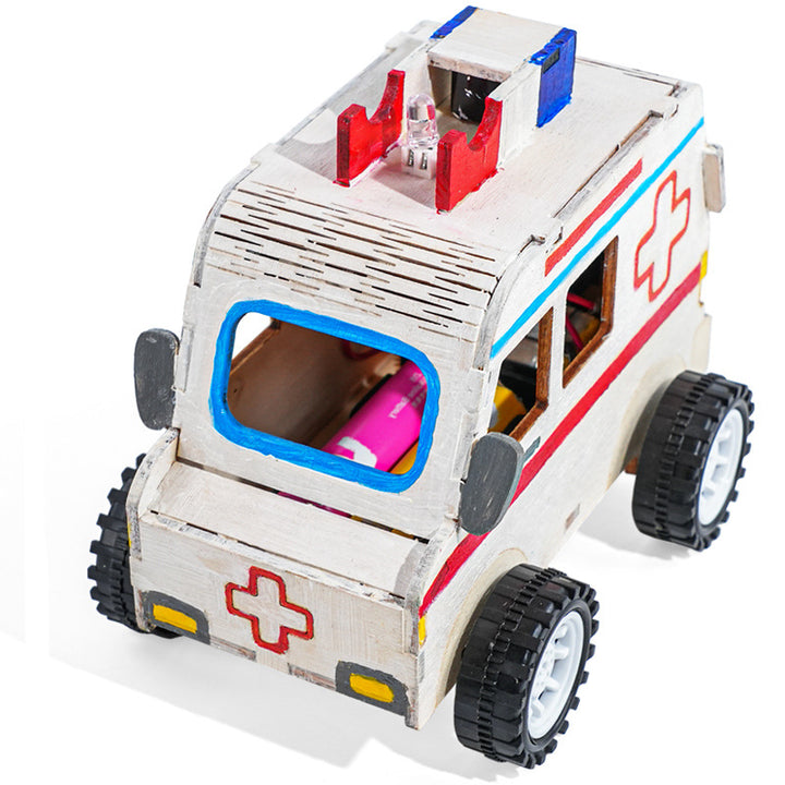 Ambulance wooden handmade DIY technology small production circuit parallel science experiment STEAM classroom teaching aid model