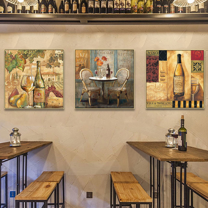 American bar decorative painting retro industrial style creative KTV box red wine glass hanging painting nostalgic wine mural