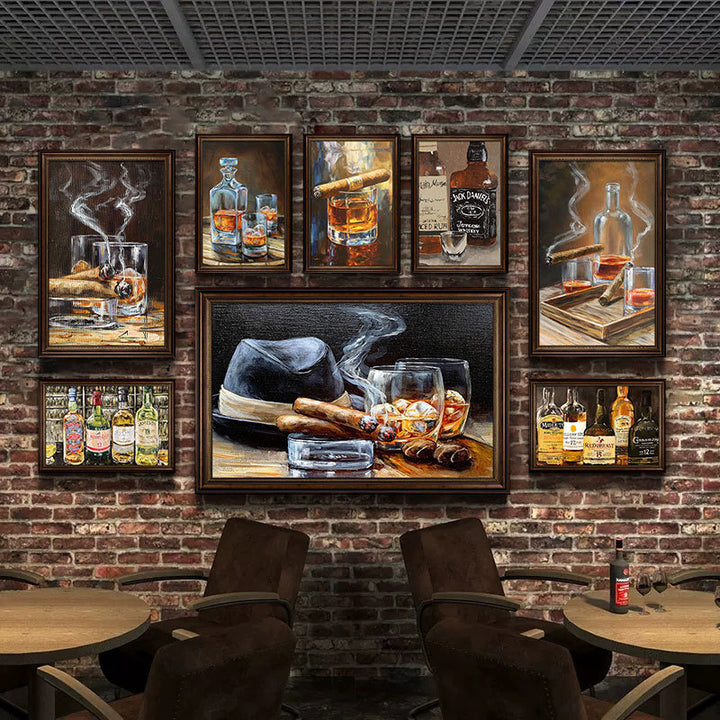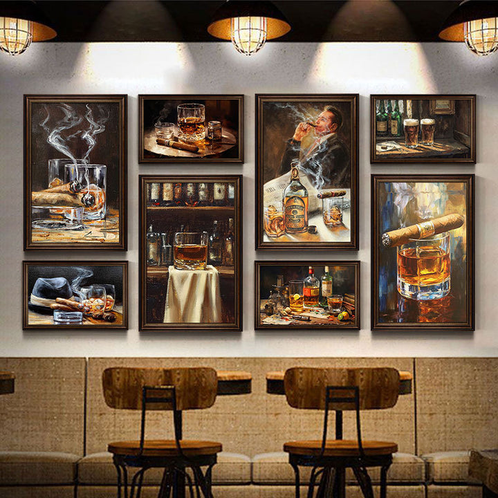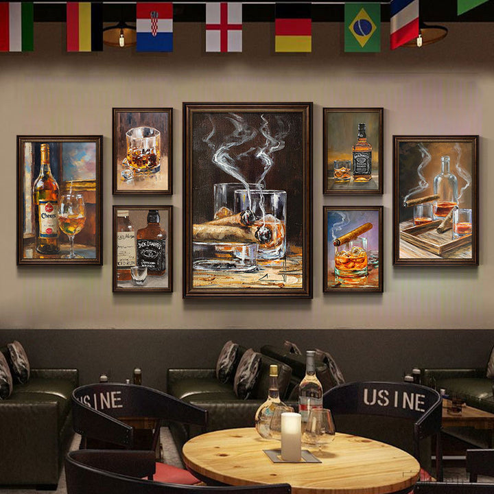American industrial style bar hanging picture cigar bar decorative picture retro whiskey oil painting western restaurant clear bar hanging picture