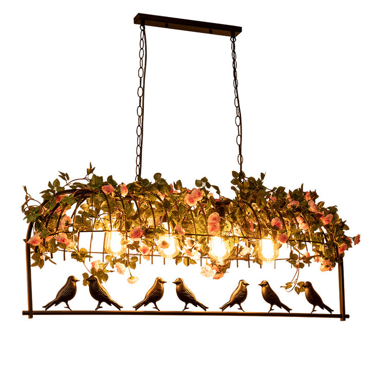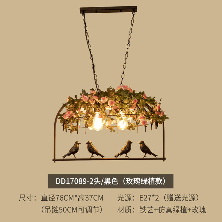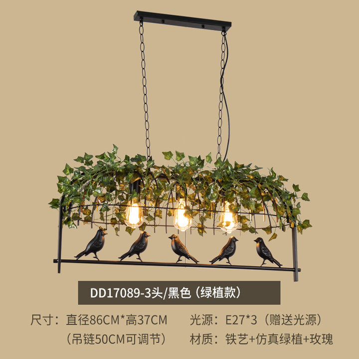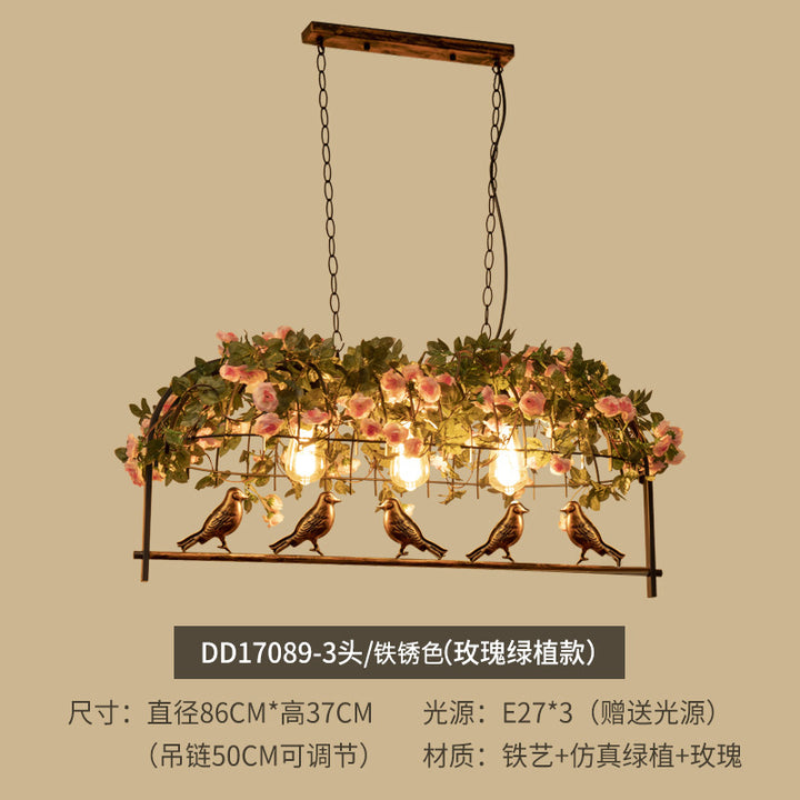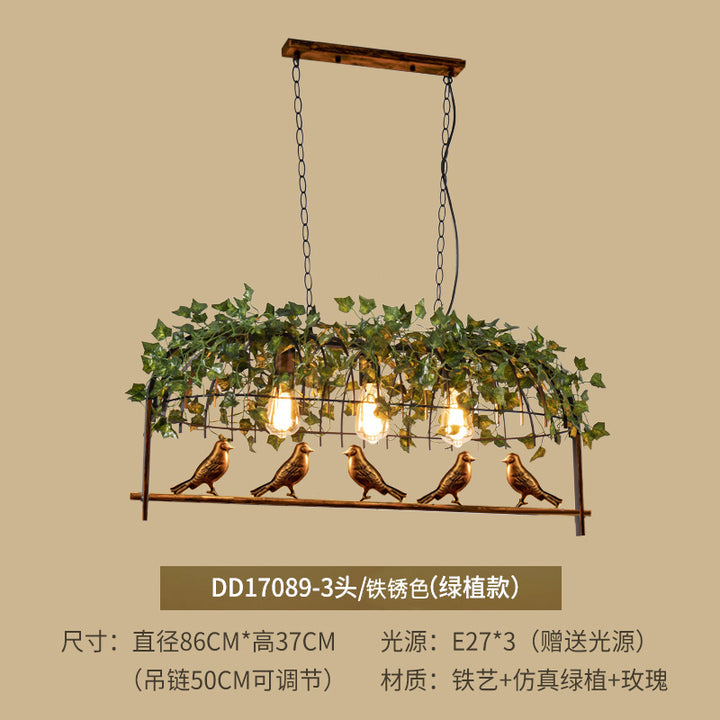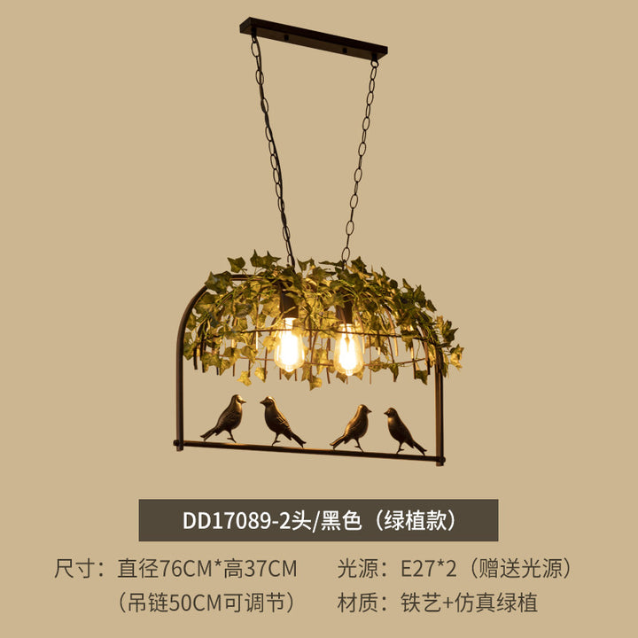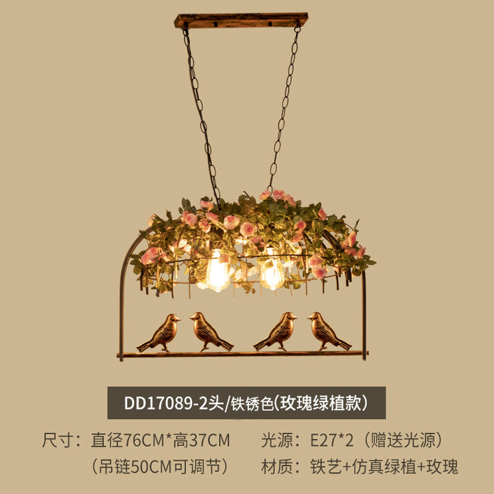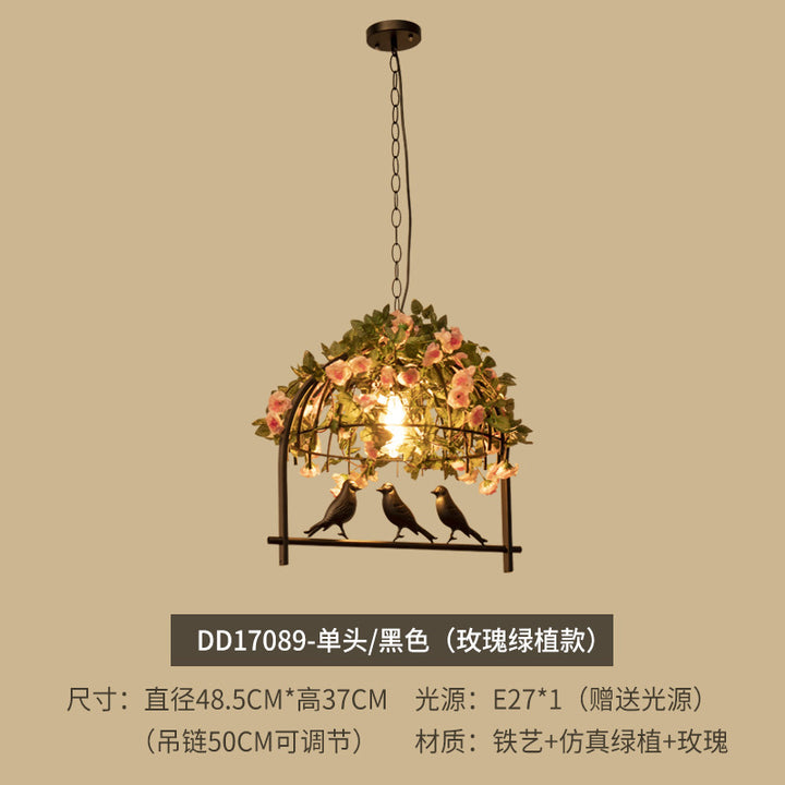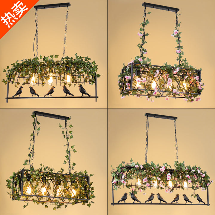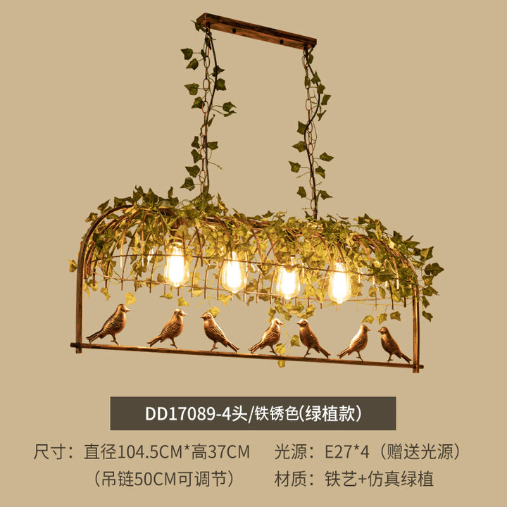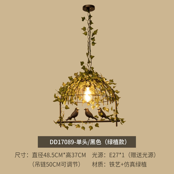 American industrial wind wrought iron bar counter plant bird cage chandelier creative personality art retro restaurant lamp green plant light