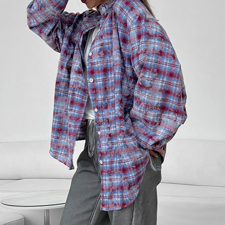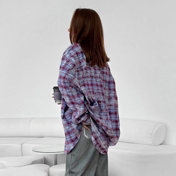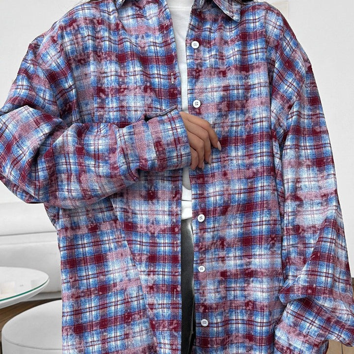American old college style plaid shirt women's 2024 spring cotton contrasting casual shirt ov...