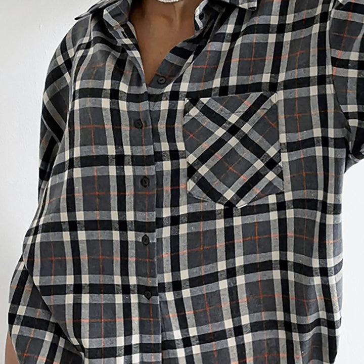 American retro gray plaid shirt 2024 spring wear loose design sunscreen shirt medium and long women's clothing