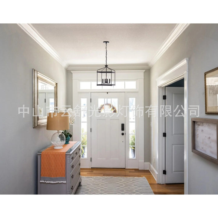 American retro industrial style square birdcage wrought iron glass Nordic creative personality wine bar counter living room dining room chandelier