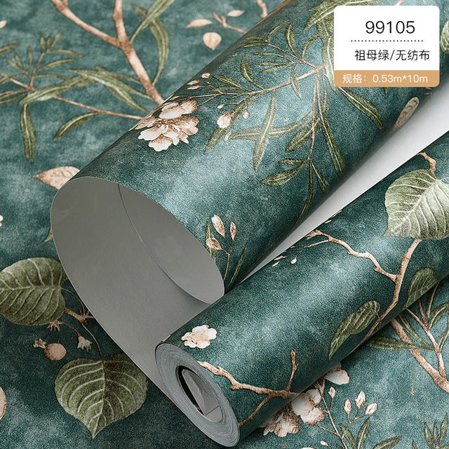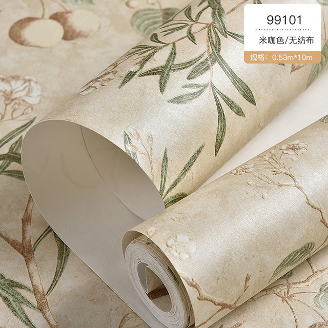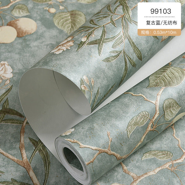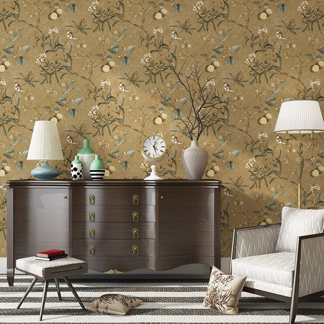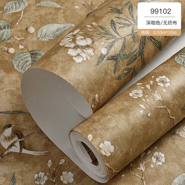 American retro nostalgic flower bird fish insect big flower non-woven wallpaper living room bedroom room TV background wall wallpaper
