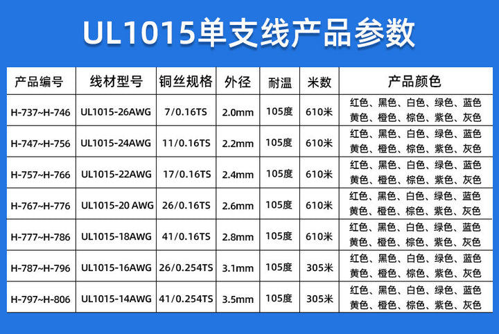 UL1015-26AWG red, UL1015-26AWG black, UL1015-26AWG White, UL1015-26AWG green, UL1015-26AWG blue, UL1015-26AWG yellow, UL1015-26AWG Orange, UL1015-26AWG Brown, UL1015-26AWG purple, UL1015-26AWG grey, UL1015-24AWG Red, UL1015-24AWG black, UL1015-24AWG White, UL1015-24AWG green, UL1015-24AWG blue, UL1015-24AWG yellow, UL1015-24AWG Orange, UL1015-24AWG Brown, UL1015-24AWG purple, UL1015-24AWG grey, UL1015-22AWG red, UL1015-22AWG black, UL1015-22AWG White, UL1015-22AWG green, UL1015-22AWG blue, UL1015-22AWG yellow, UL1015-22AWG Orange, UL1015-22AWG Brown, UL1015-22AWG purple, UL1015-22AWG grey, UL1015-20AWG red, UL1015-20AWG black, UL1015-20AWG White, UL1015-20AWG green, UL1015-20AWG blue, UL1015-20AWG yellow, UL1015-20AWG Orange, UL1015-20AWG ę£č², UL1015-20AWG ē“«č², UL1015-20AWG grey, UL1015-18AWG red, UL1015-18AWG black, UL1015-18AWG White, UL1015-18AWG green, UL1015-18AWG blue, UL1015-18AWG yellow, UL1015-18AWG Orange, UL1015-18AWG brown, UL1015-18AWG purple, UL1015-18AWG grey, UL1015-16AWG red, UL1015-16AWG black, UL1015-16AWG White, UL1015-16AWG green, UL1015-16AWG blue, UL1015-16AWG yellow, UL1015-16AWG Orange, UL1015-16AWG brown, UL1015-16AWG purple, UL1015-16AWG grey, UL1015-14AWG red, UL1015-14AWG black, UL1015-14AWG White, UL1015-14AWG green, UL1015-14AWG blue, UL1015-14AWG yellow, UL1015-14AWG Orange, UL1015-14AWG Brown, UL1015-14AWG purple, UL1015-14AWG grey |