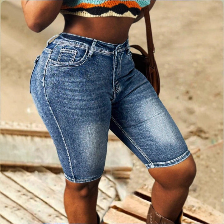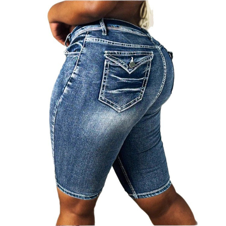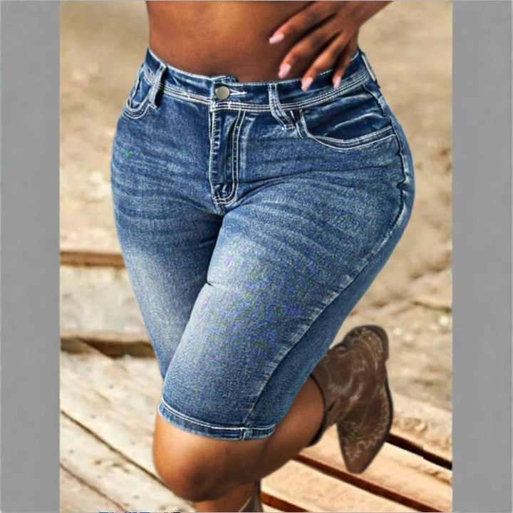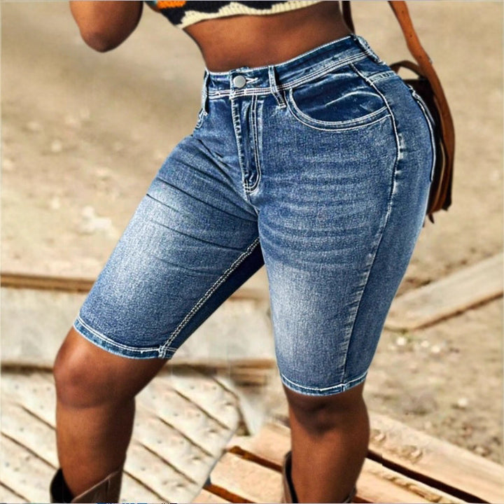 ATC50053 European and American women's elastic denim shorts bright line design casual tube pants