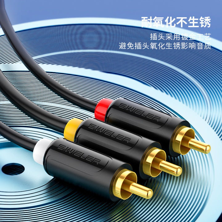 Audio cable 3rca male-to-male three lotus shielded copper core speaker cable computer TV output into subwoofer