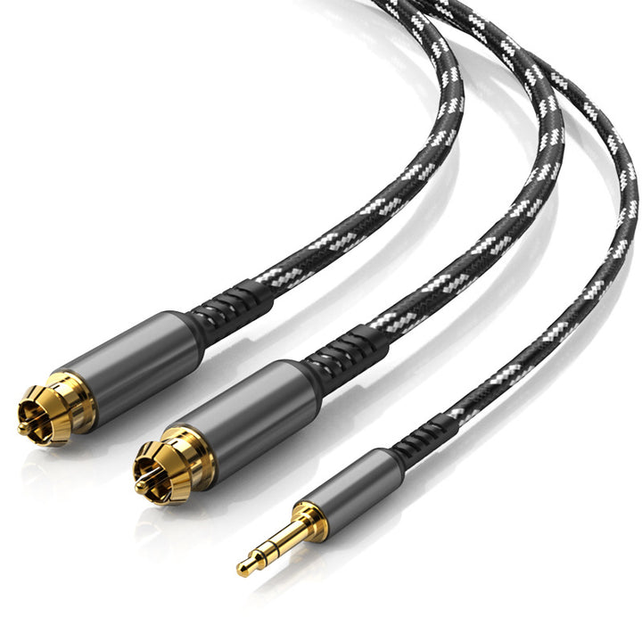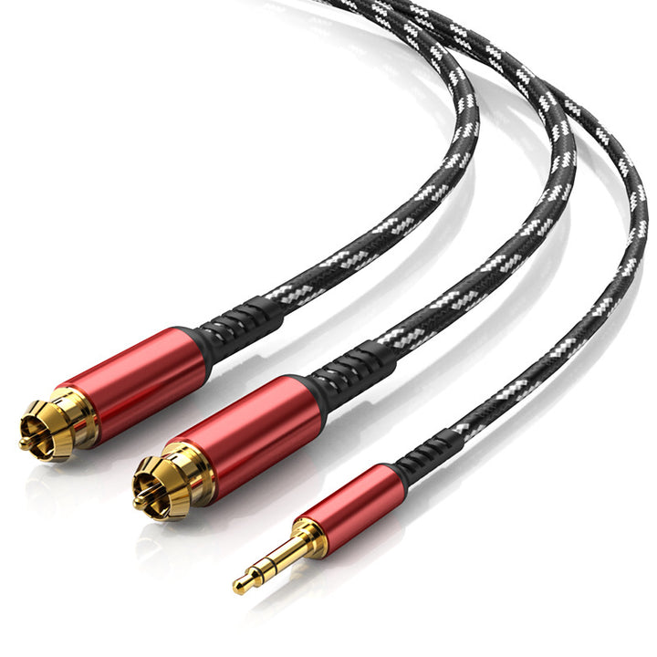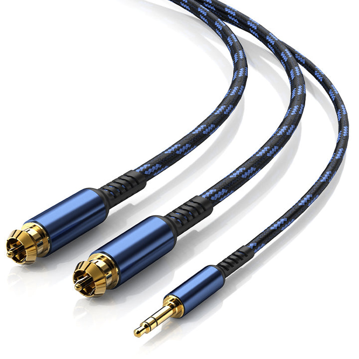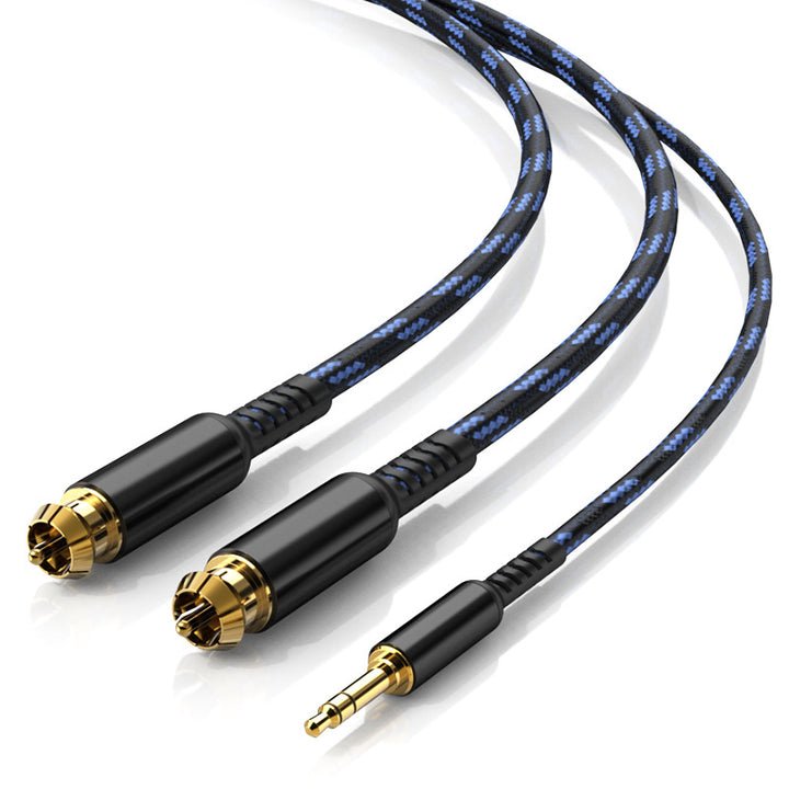 Audio cable one point two 3.5mm to double lotus head rca plug mobile phone desktop computer connected to power amplifier speaker cable