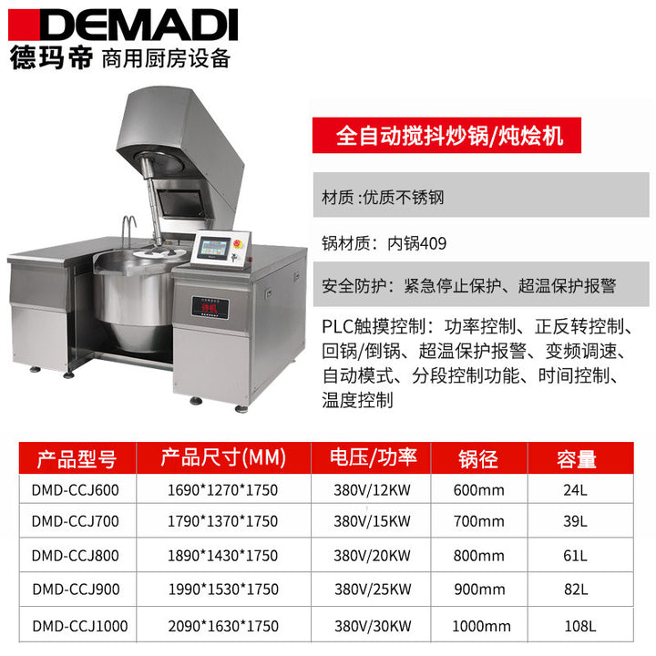 12KW commercial electromagnetic planetary tilting automatic cooking machine (with 600MM wok), 15KW commercial electromagnetic planetary tilting automatic cooking machine (with 700MM wok), 20KW commercial electromagnetic planetary tilting automatic cooking machine (with 800MM wok), 25KW commercial electromagnetic planetary tilting automatic cooking machine (with 900MM wok), 30KW商用电磁行星倾斜式自动炒菜机(配1000MM炒锅) |