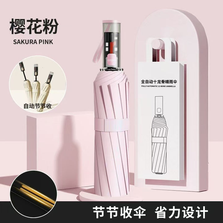 Automatic umbrella, enlarged and thickened, reinforced for both weather and rain, women and men's sunshade and sunscreen, ultraviolet rays, and umb...