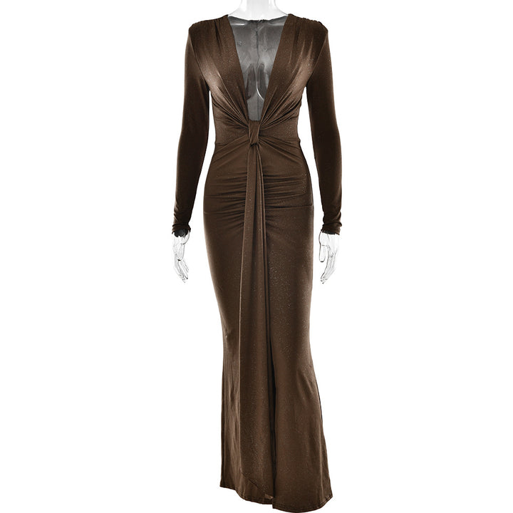 autumn and winter fashion sexy deep V-neck streamer dress, new Spice Girl slim dress